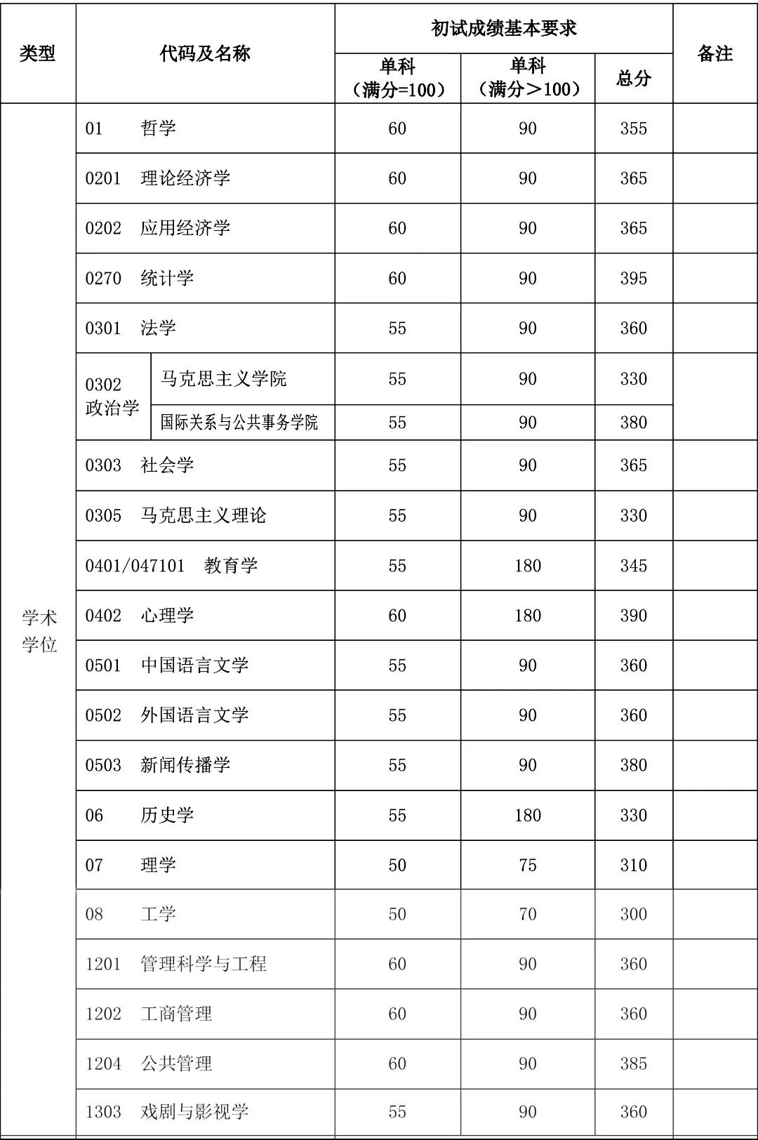 3.“退役大學生士兵計劃”:總分滿分等于500分的專業,要求考生總分不低于所報考學科初試成績基本要求總分的10分;總分滿分等于300分的專業,要求考生總分不低于所報考學科初試成績基本要求總分的5分。