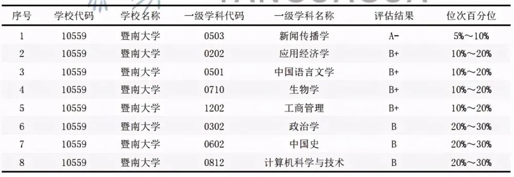 A級學科(包括A+、A、A-)共12個: