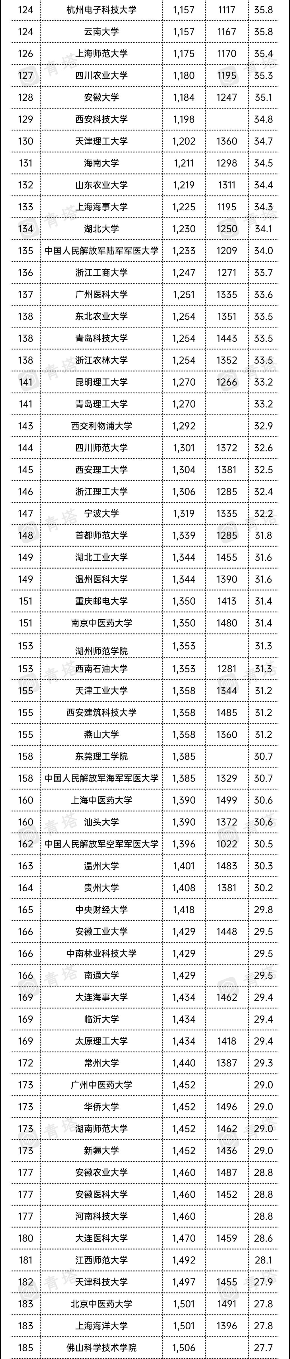 今年,中國內地共有11所大學進入全球200強,比去年增加3所。除了清華和北大,另外九所高校分別是上海交通大學(105名)、中國科學技術大學(110名)、浙江大學(115名)、南京大學(135名)、復旦大學(141名)、中山大學(159名)和中國科學院大學(159名)、華中科技大學(176名)、湖南大學(195名)。此外,排名靠前的高校還包括哈爾濱工業大學、武漢大學、同濟大學、中南大學、華南理工大學、東南大學、西安交通大學等。