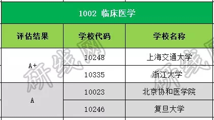 其中醫學學科高校評估結果為A及A以上等級的學校名稱及代碼如下: