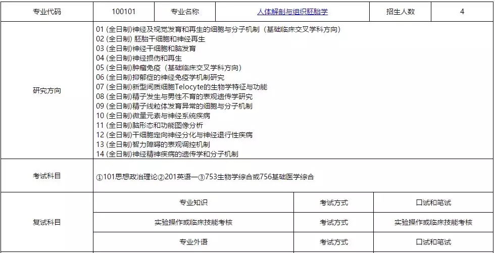 復旦大學/1001 基礎醫學/100101人體解剖和組織胚胎學考試科目為: