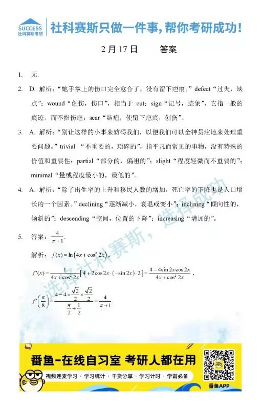 以上就是社科賽斯考研網小編為大家整理2022考研每日一練:2月17日每日一練及答案的全部內容,希望各位考生堅持利用起來,更多每日一練內容請持續關注社科賽斯考研網