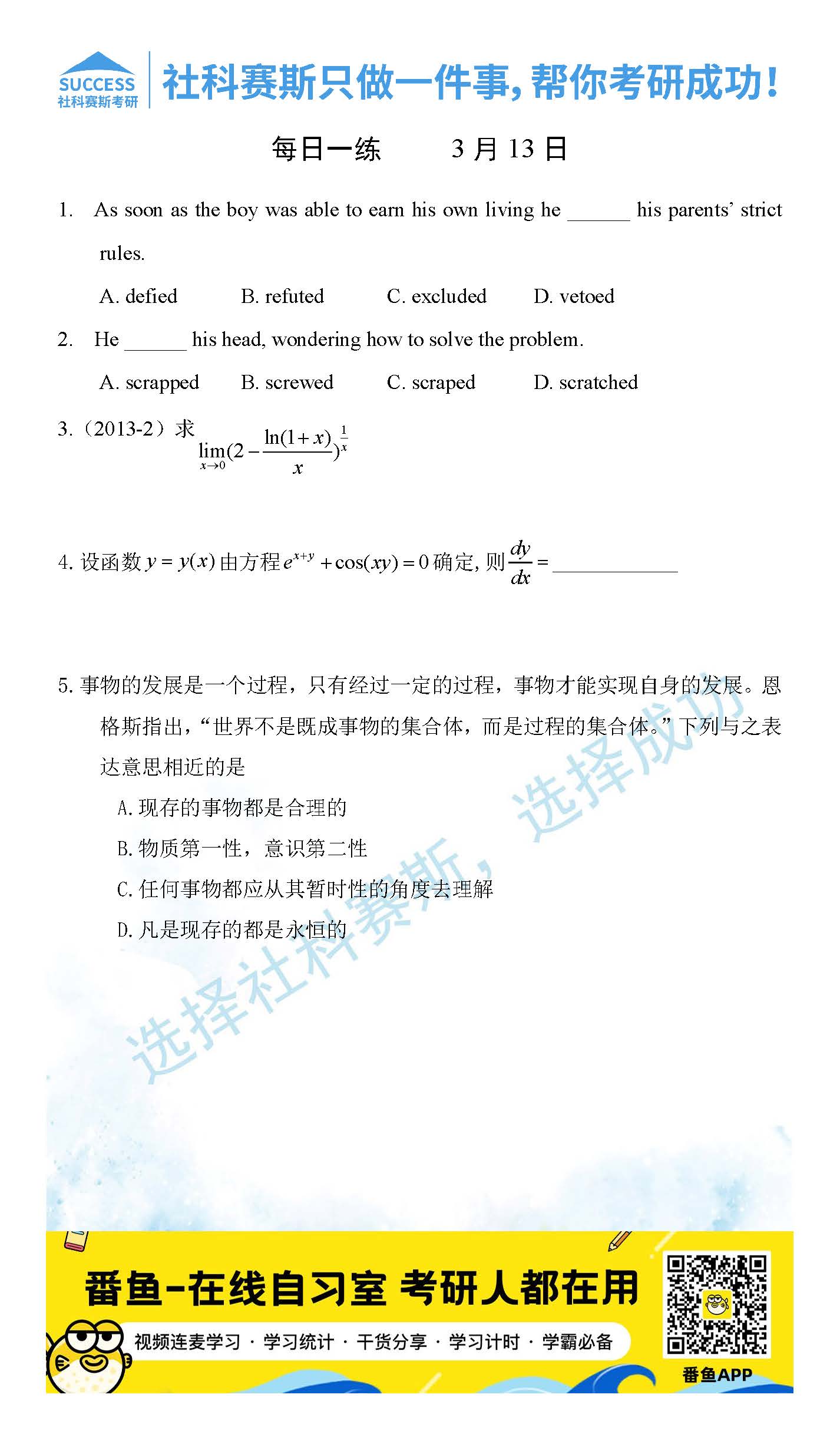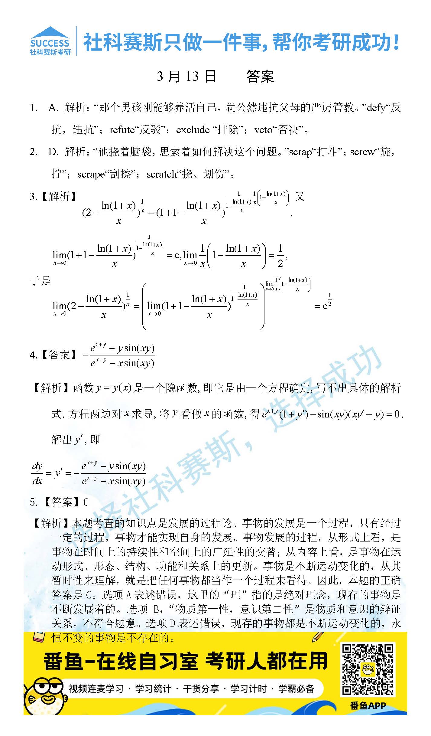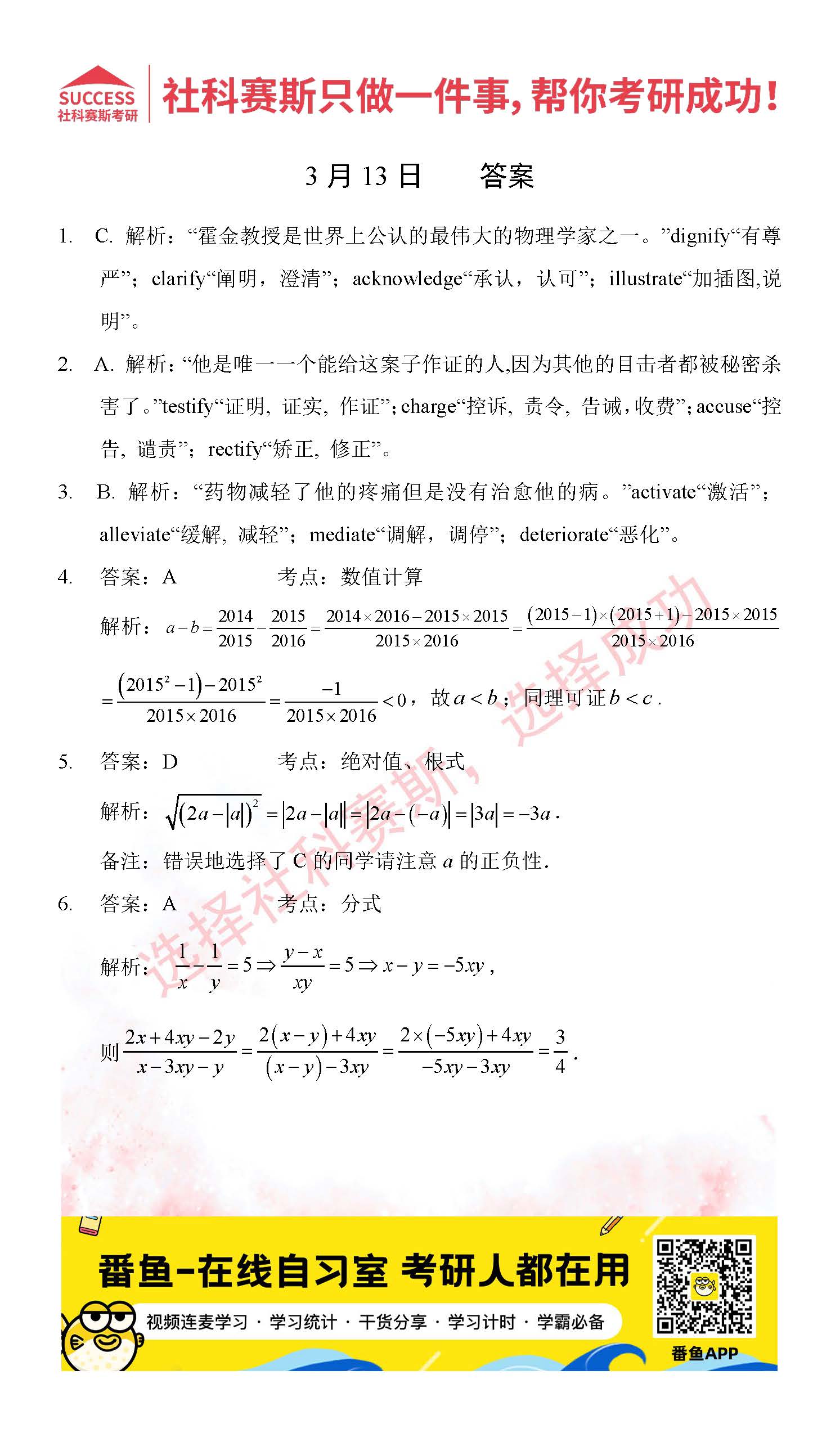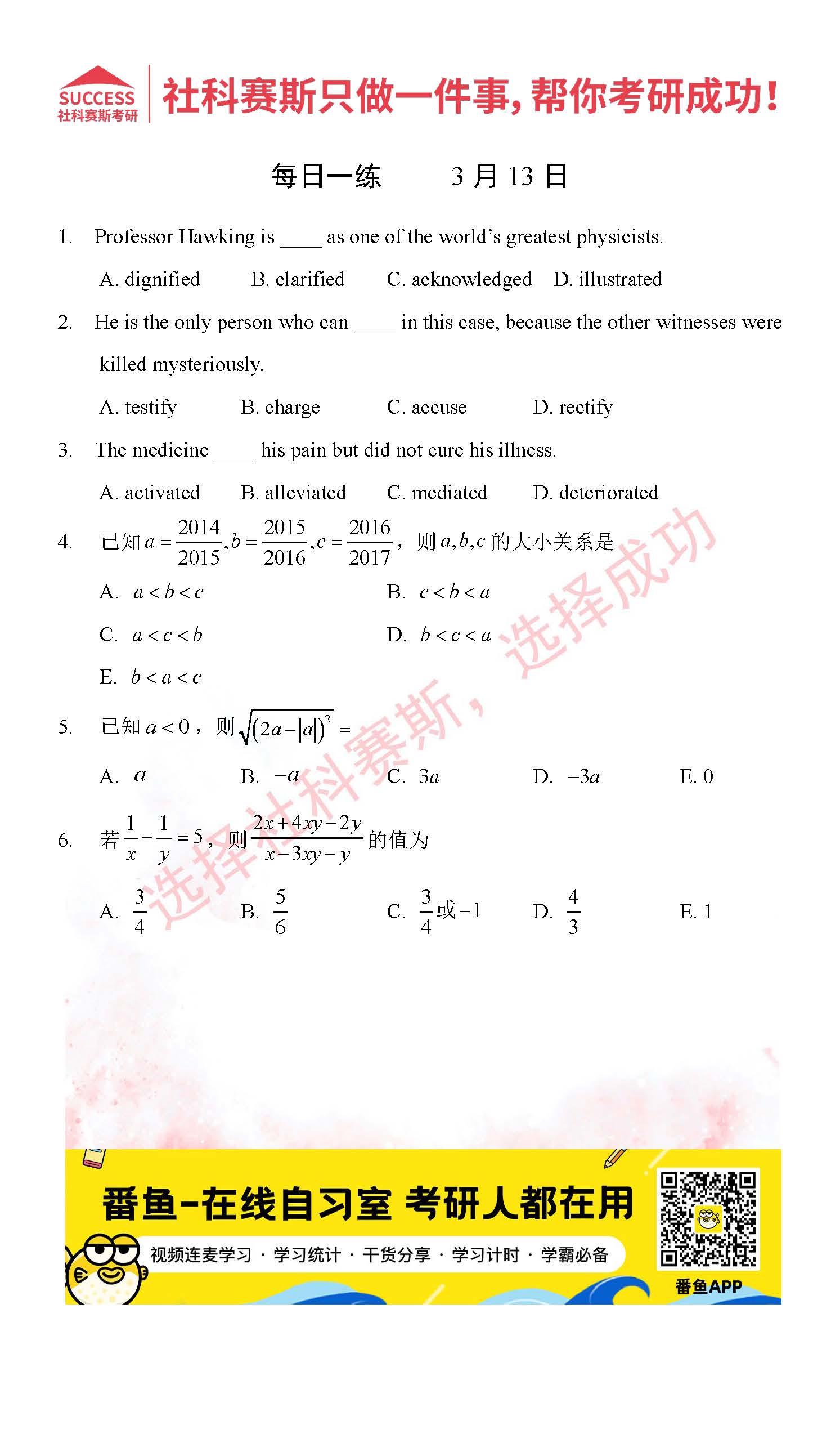 以上就是社科賽斯考研網小編為大家整理2022考研每日一練:3月13日管理類聯考每日一練及答案的全部內容,希望各位考生堅持利用起來,更多每日一練內容請持續關注社科賽斯考研網
