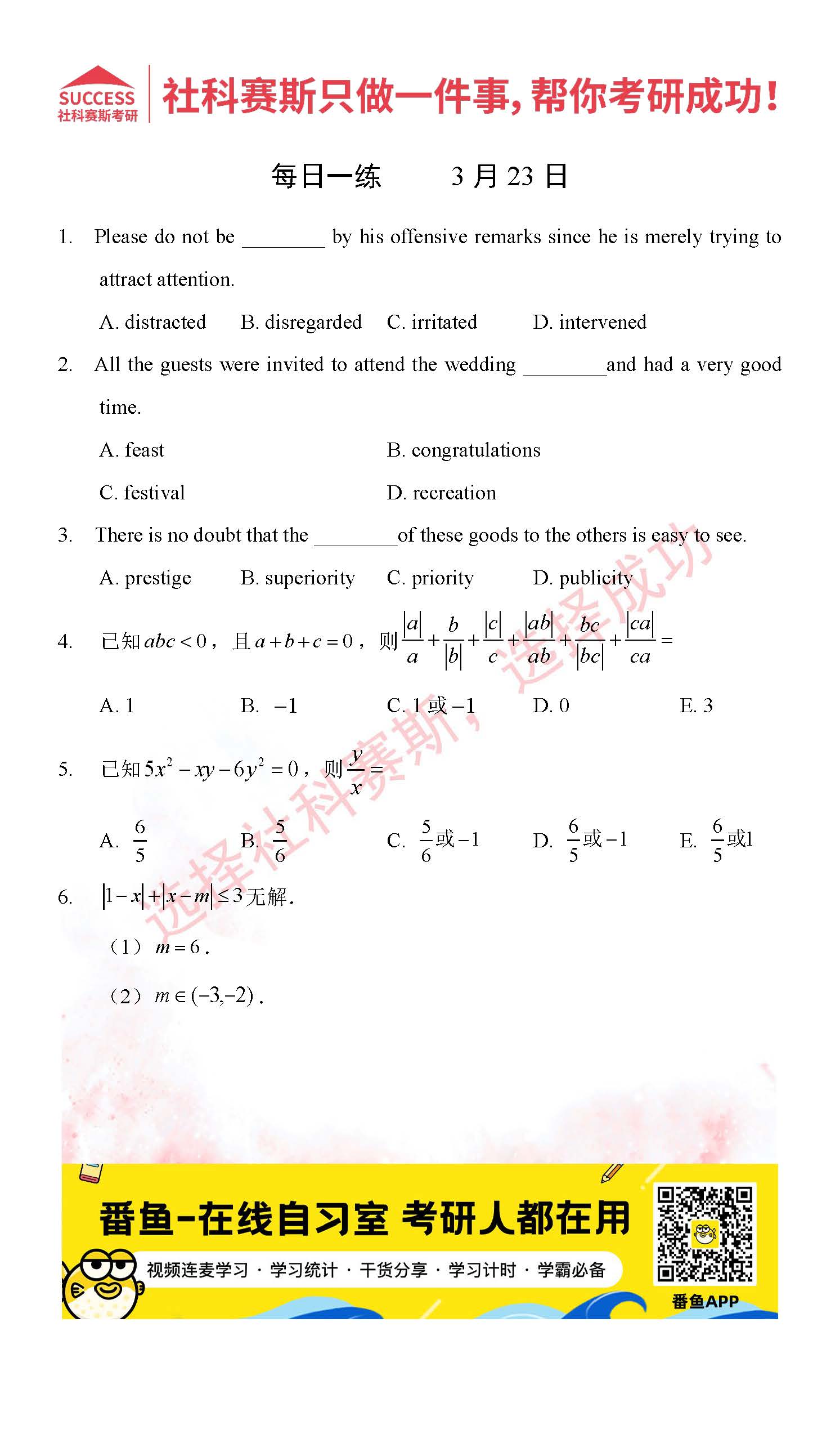 2022考研每日一練:3月23日管理類聯考每日一練及答案