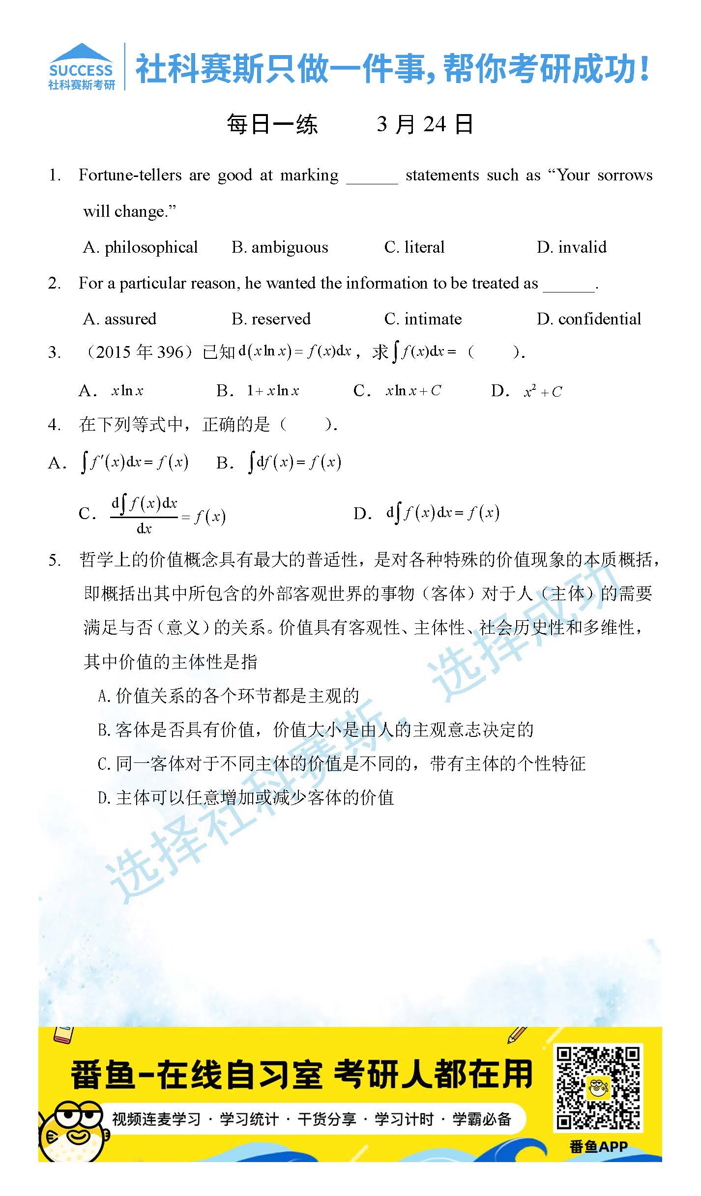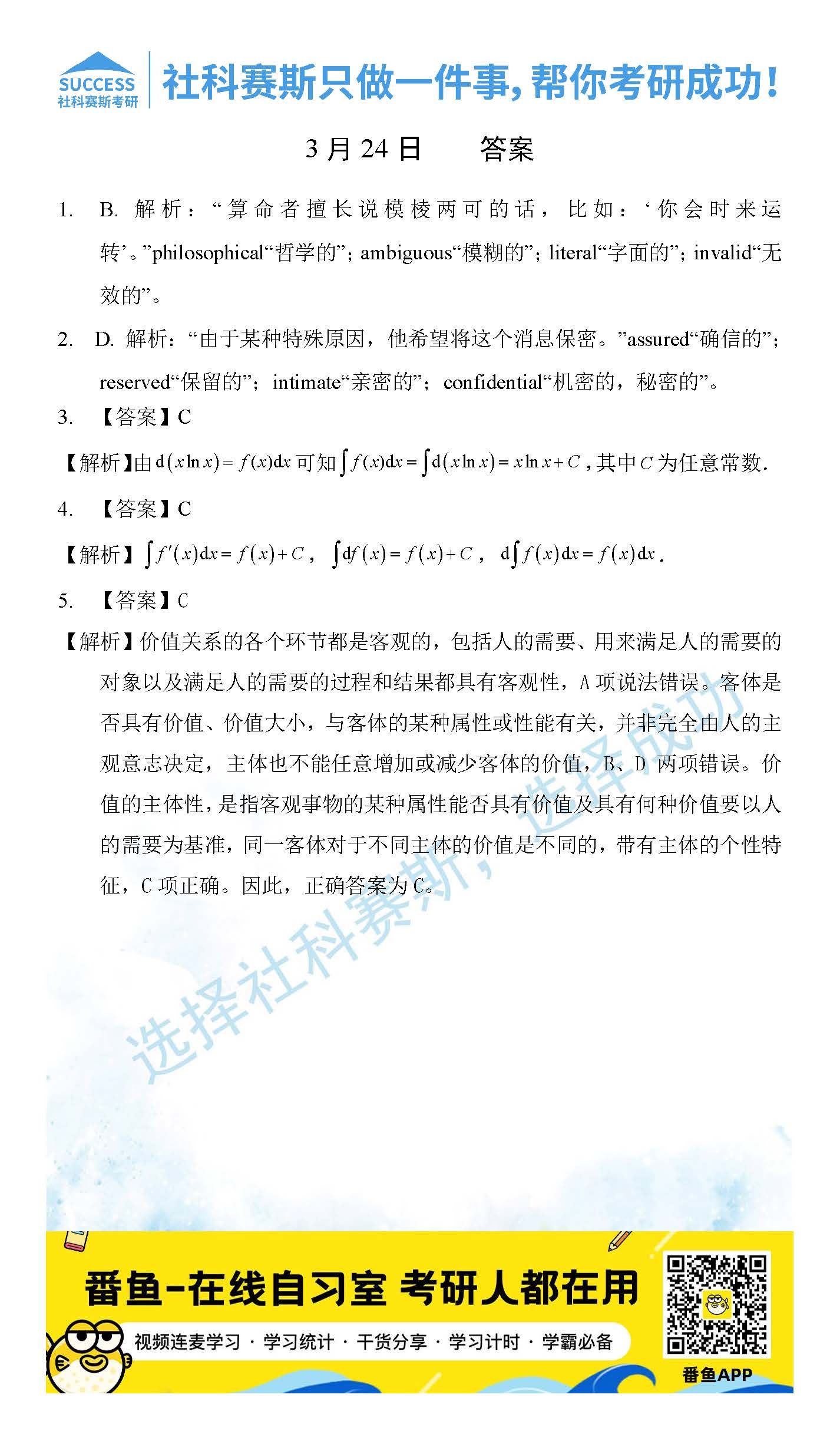 ?以上就是社科賽斯考研網小編為大家整理2022考研每日一練:3月24日管理類聯考每日一練及答案的全部內容,希望各位考生堅持利用起來,更多每日一練內容請持續關注社科賽斯考研網