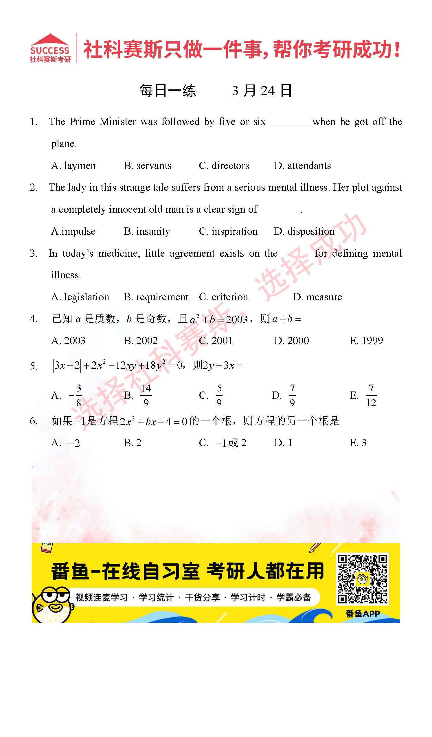 2022考研每日一練:3月24日管理類聯考每日一練及答案