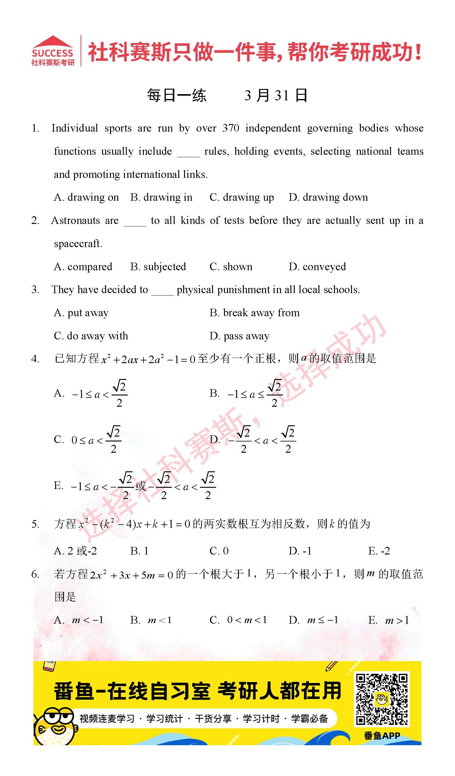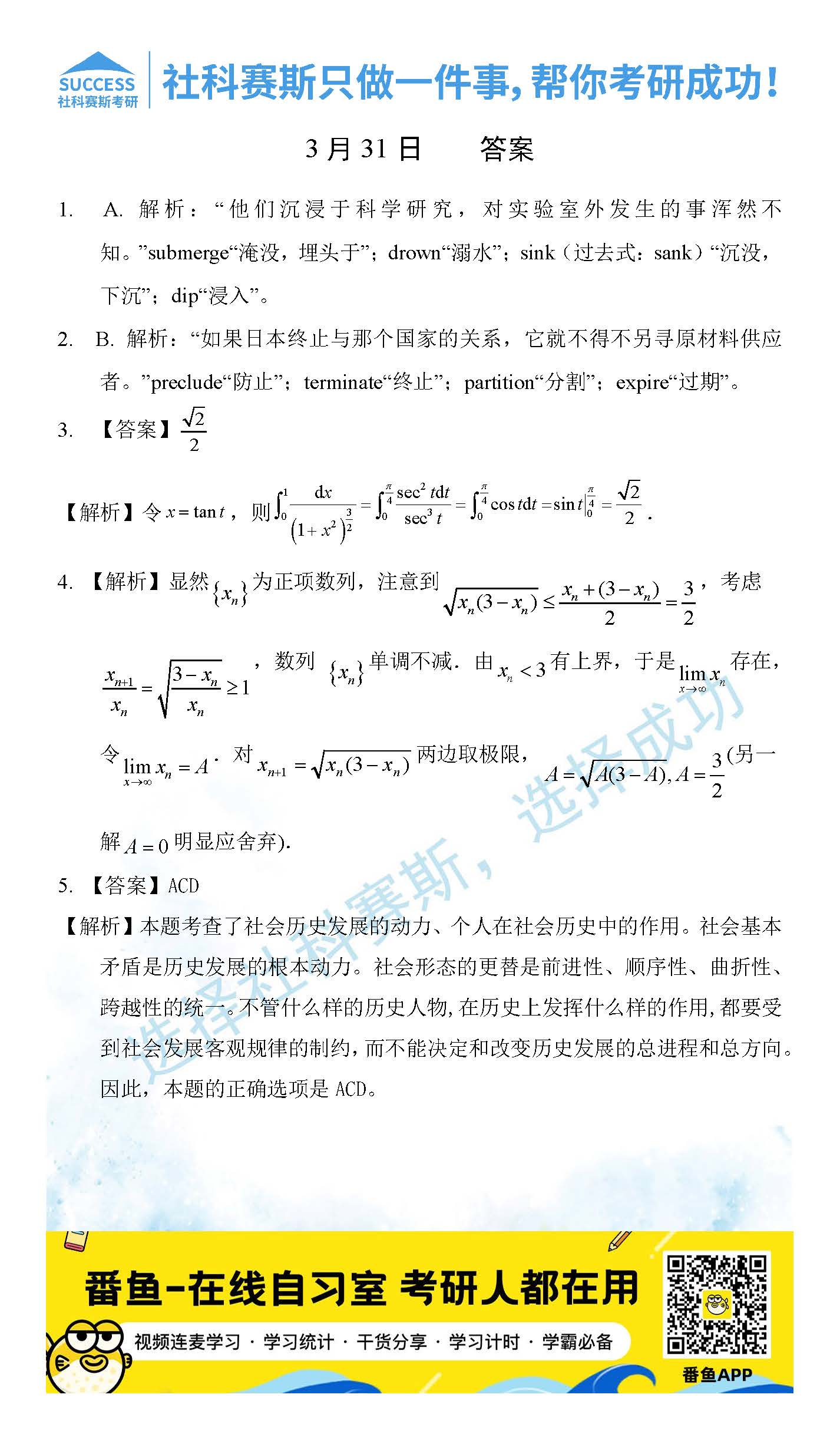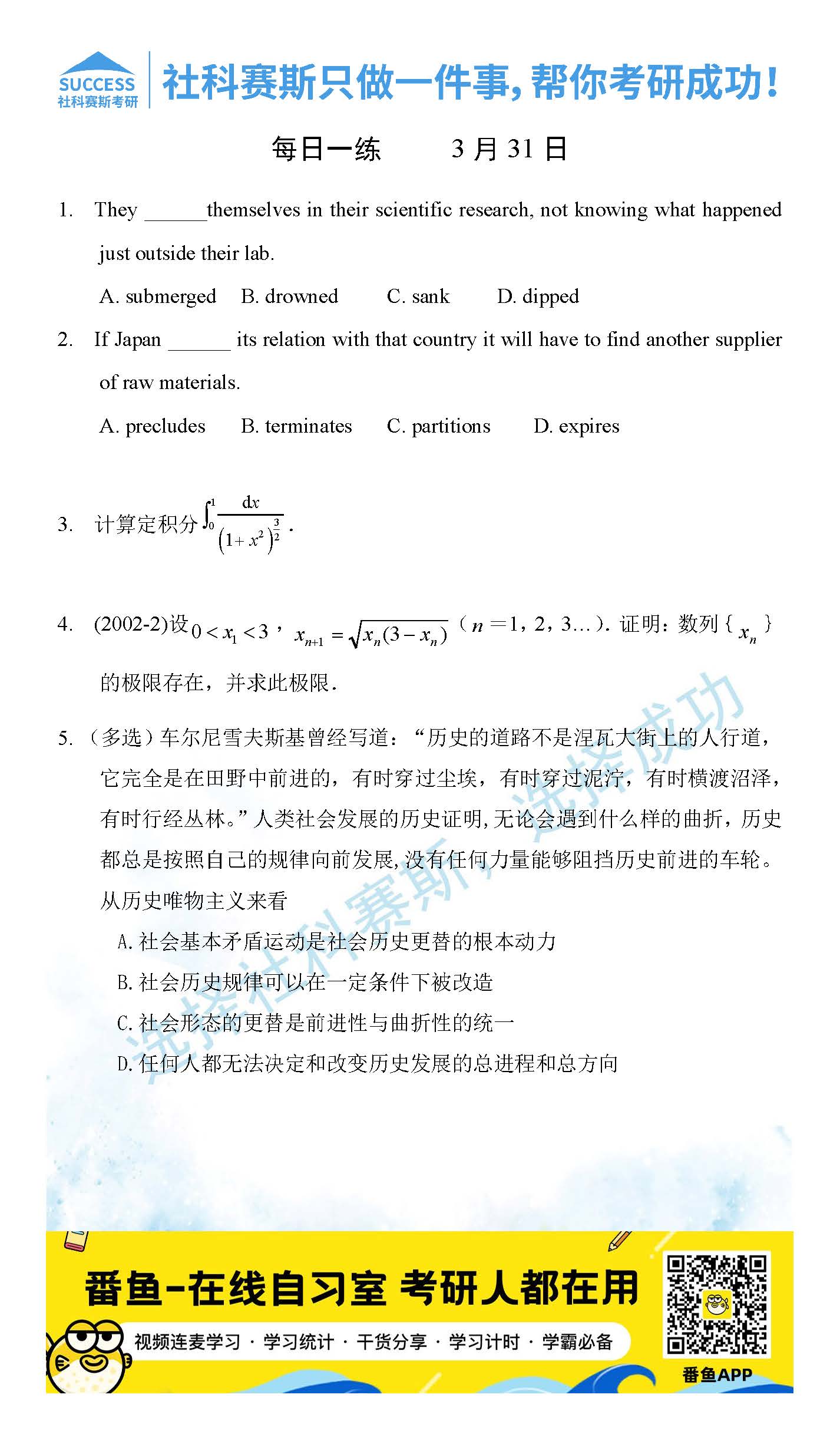 ?以上就是社科賽斯考研網小編為大家整理2022考研每日一練:3月31日管理類聯考每日一練及答案的全部內容,希望各位考生堅持利用起來,更多每日一練內容請持續關注社科賽斯考研網。