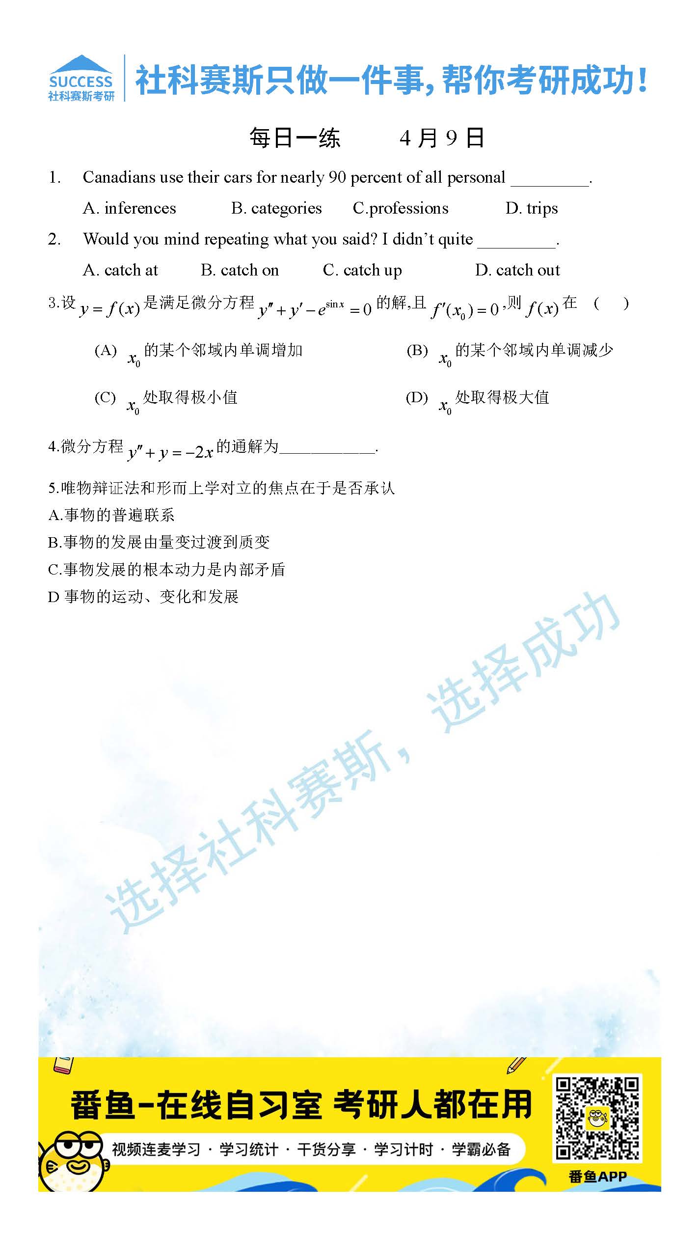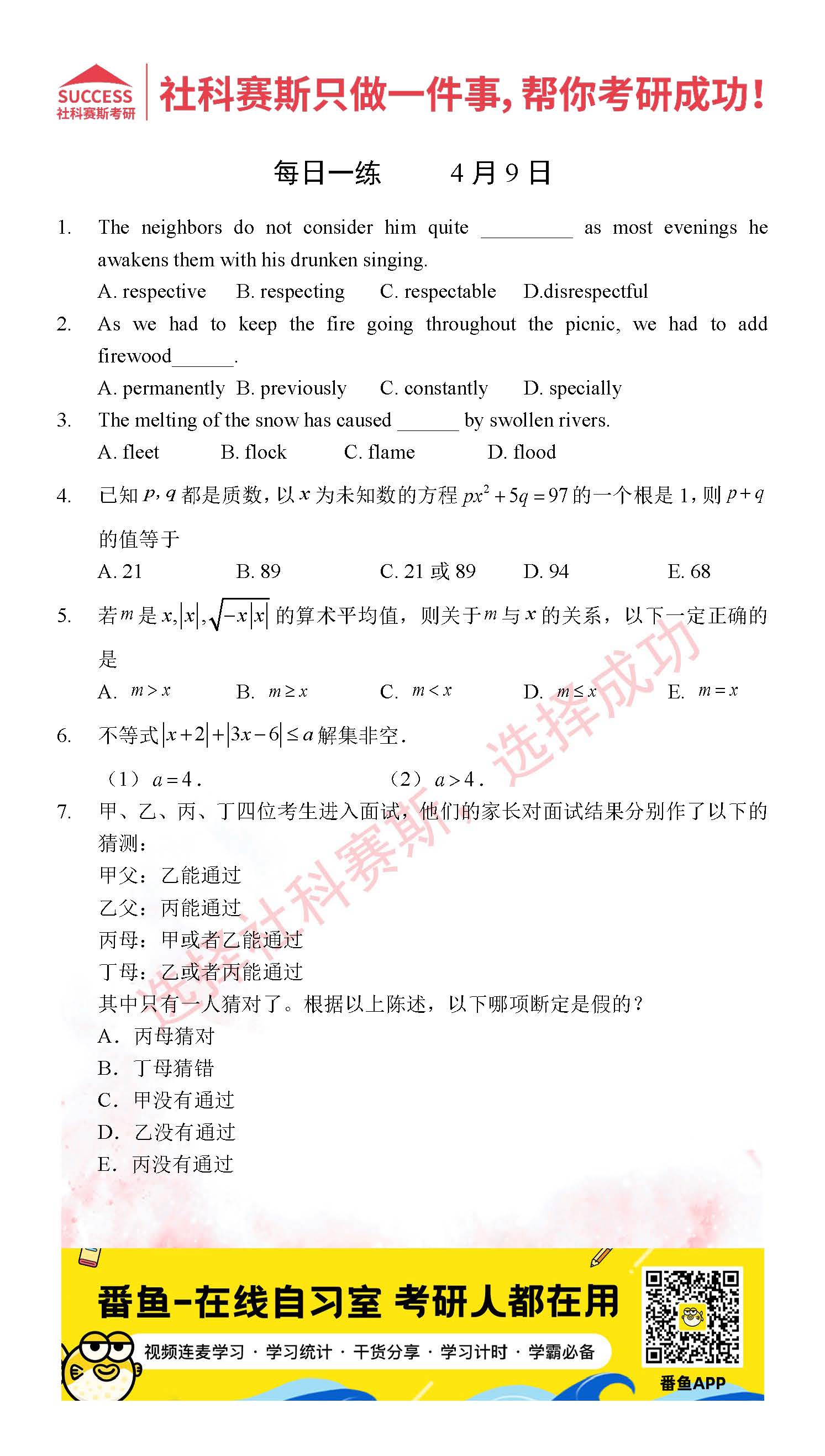 2022考研每日一練:4月9日管理類聯考每日一練及答案