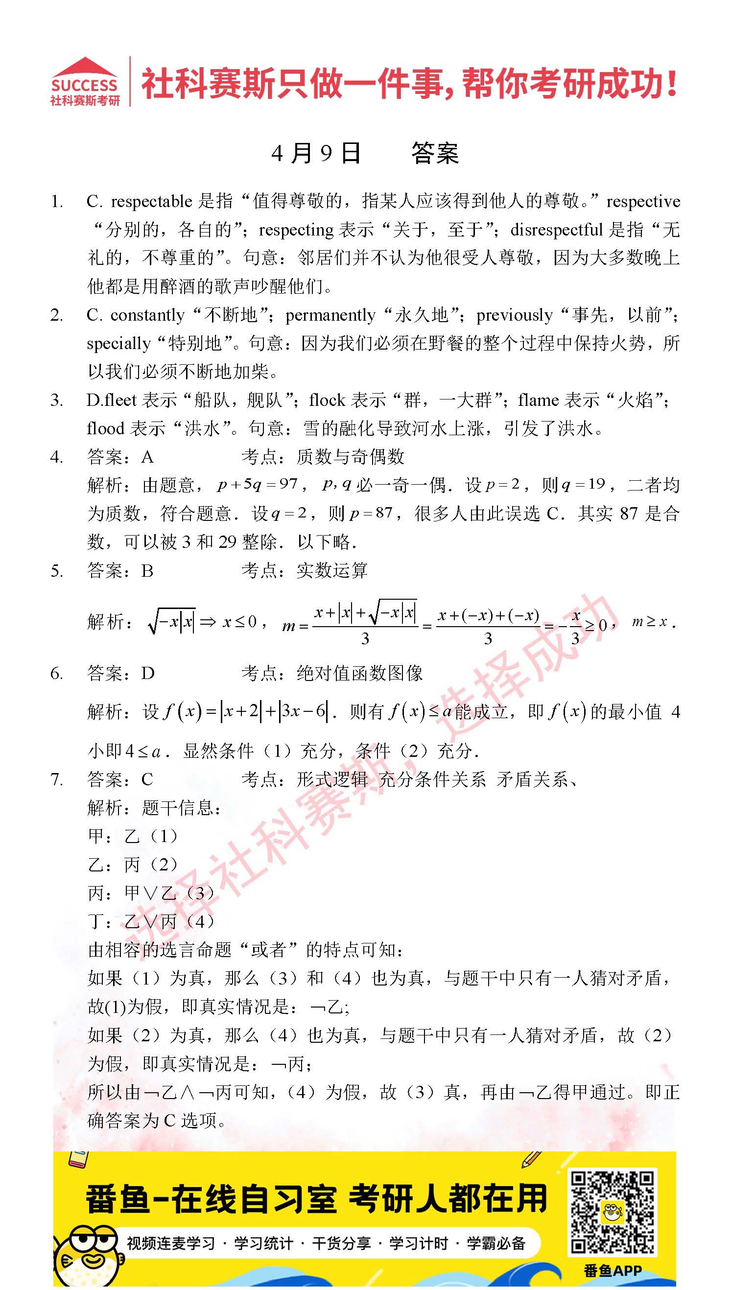 ?以上就是社科賽斯考研網小編為大家整理2022考研每日一練:4月9日管理類聯考每日一練及答案的全部內容,希望各位考生堅持利用起來,更多每日一練內容請持續關注社科賽斯考研網