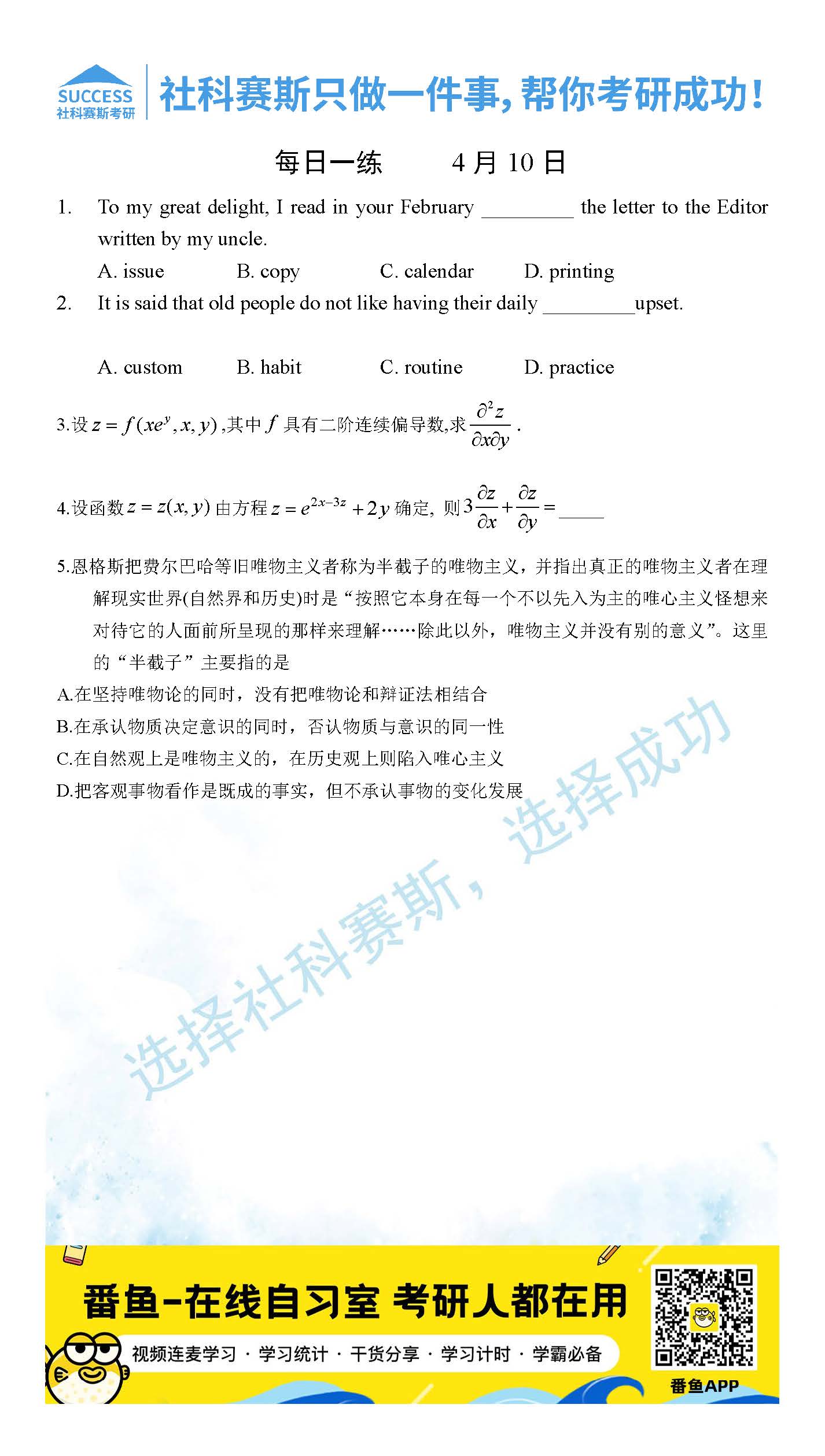 2022考研每日一練:4月10日管理類聯(lián)考每日一練及答案