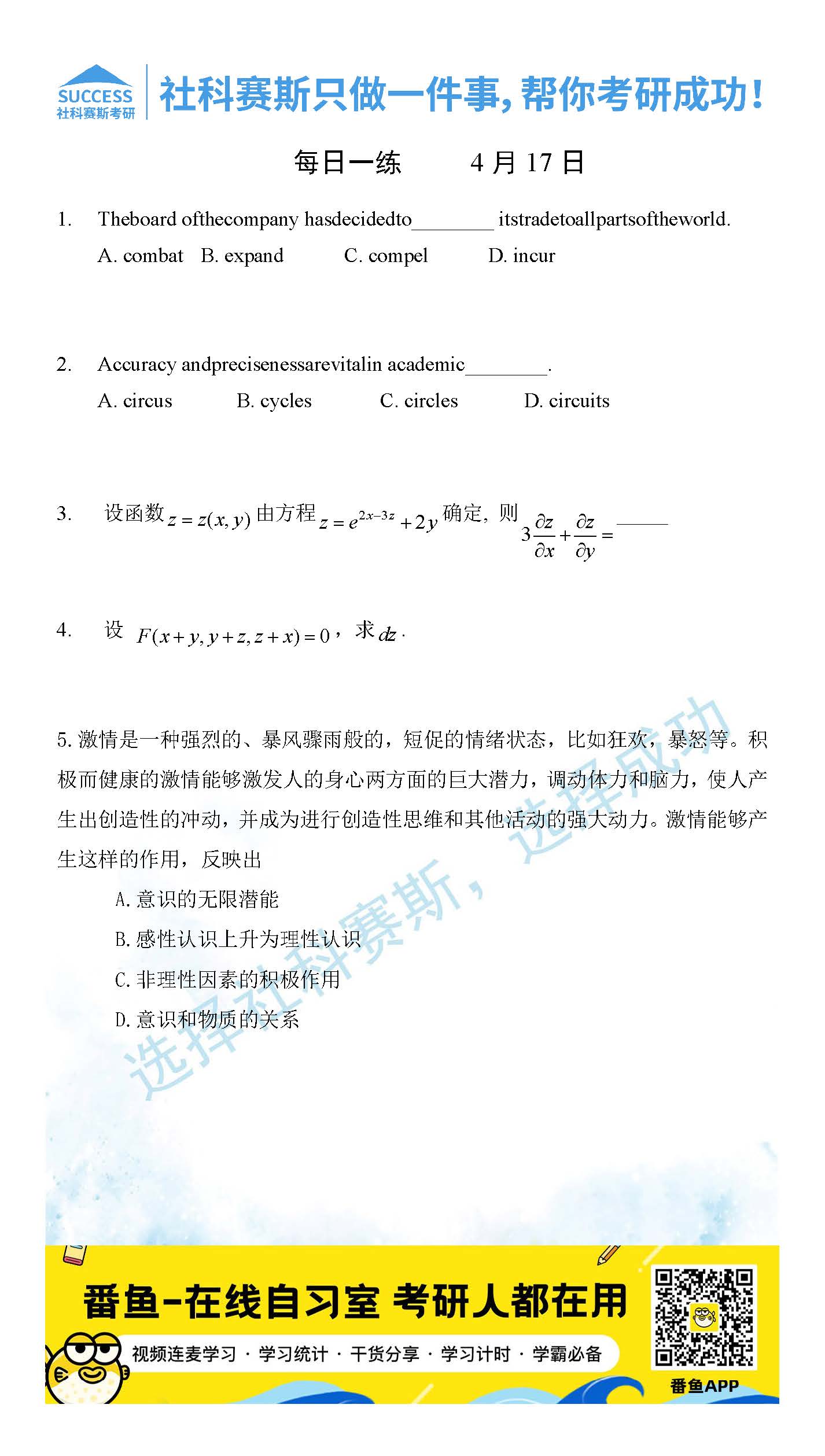 2022考研每日一練:4月17日管理類聯考每日一練及答案