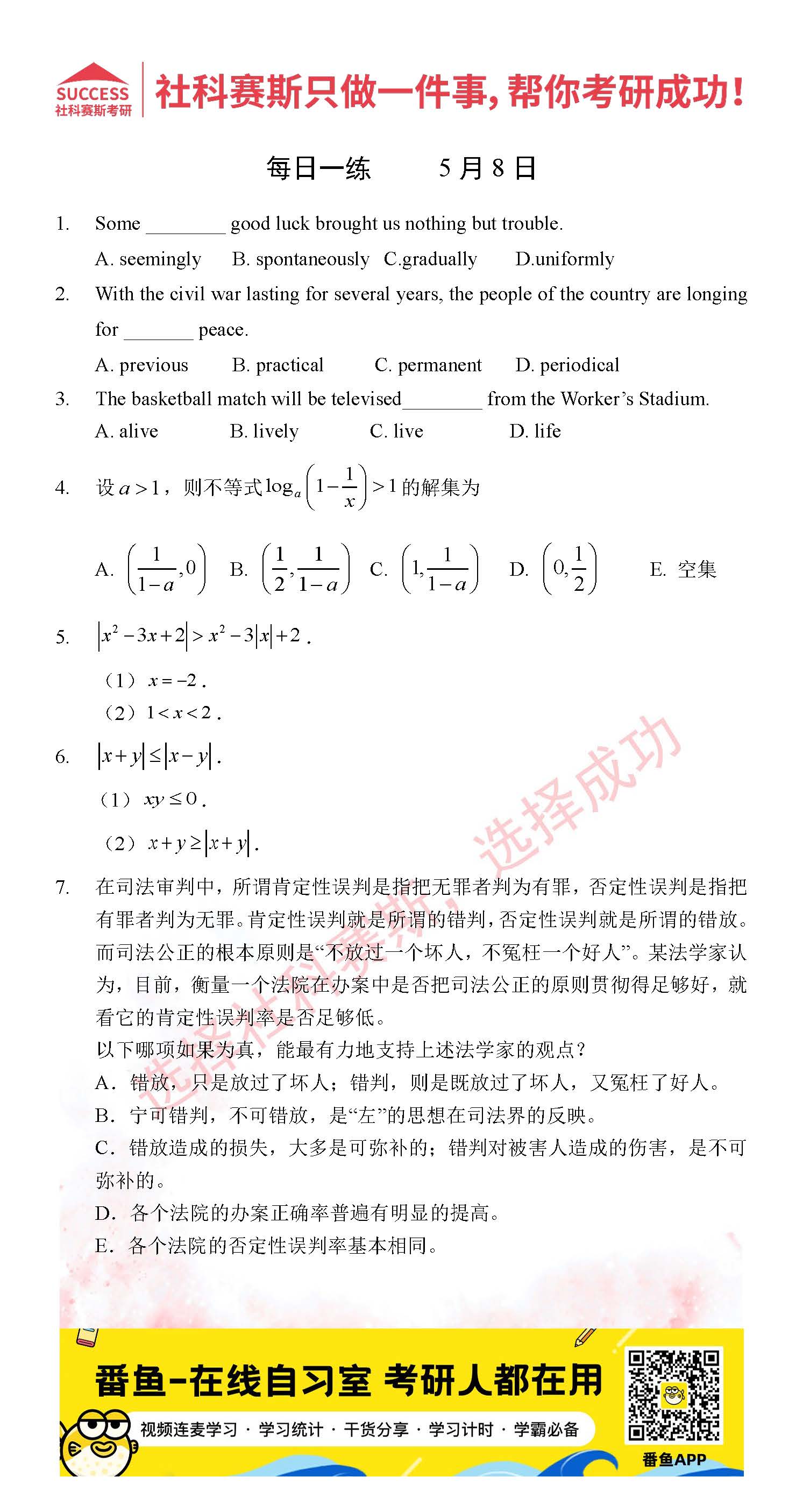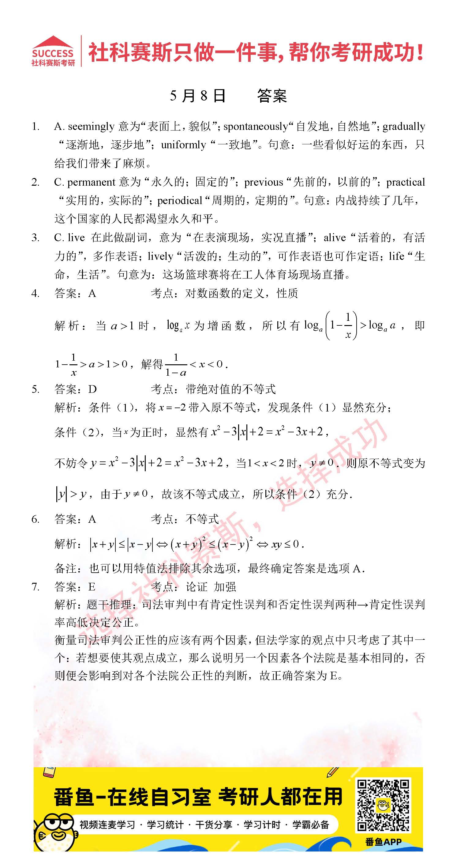 以上就是社科賽斯考研網(wǎng)小編為大家整理2022考研每日一練:5月8日管理類聯(lián)考每日一練及答案的全部?jī)?nèi)容,希望各位考生堅(jiān)持利用起來,更多每日一練內(nèi)容請(qǐng)持續(xù)關(guān)注社科賽斯考研網(wǎng)