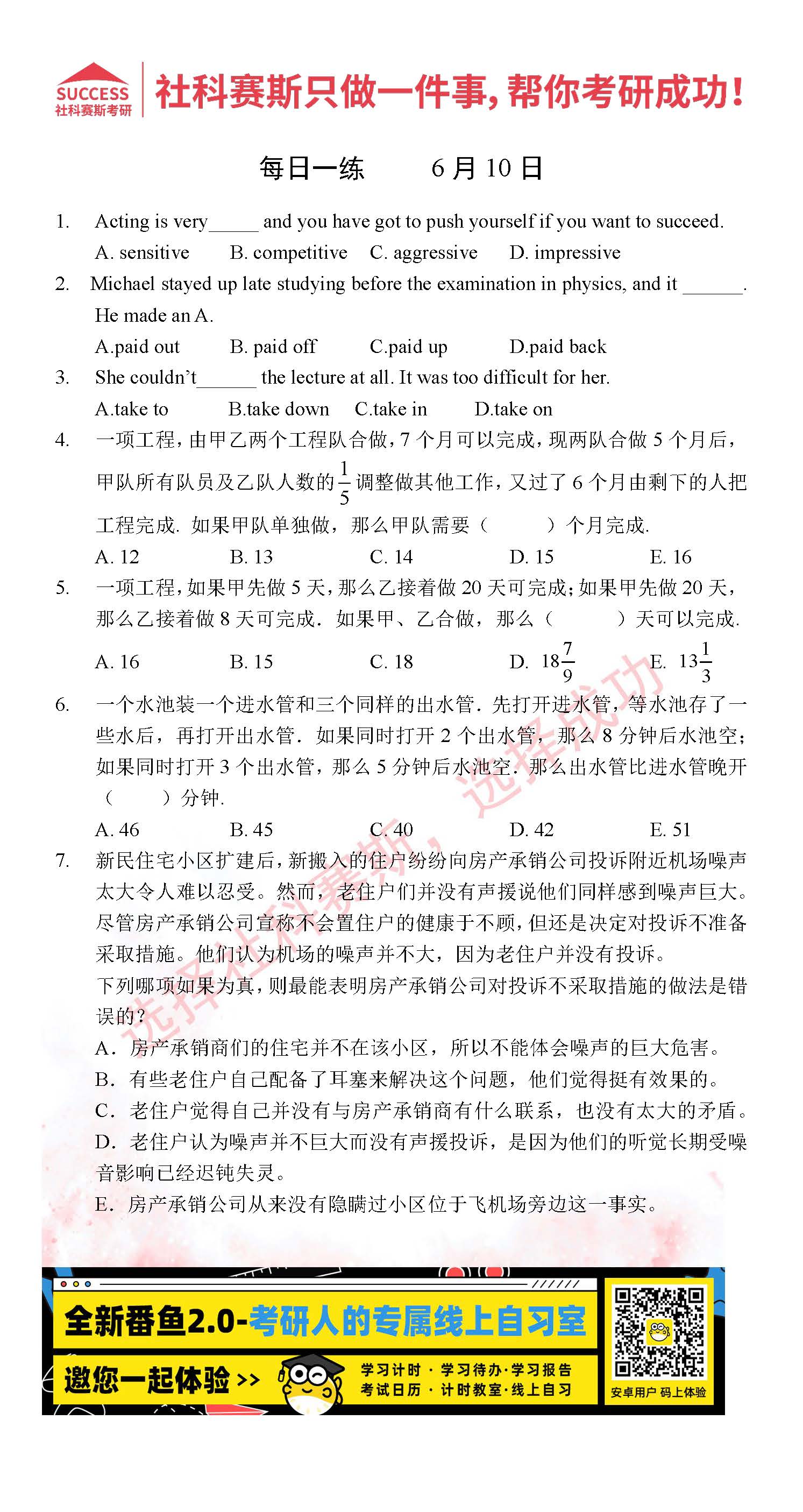 2022考研每日一練:6月10日管理類聯(lián)考每日一練及答案