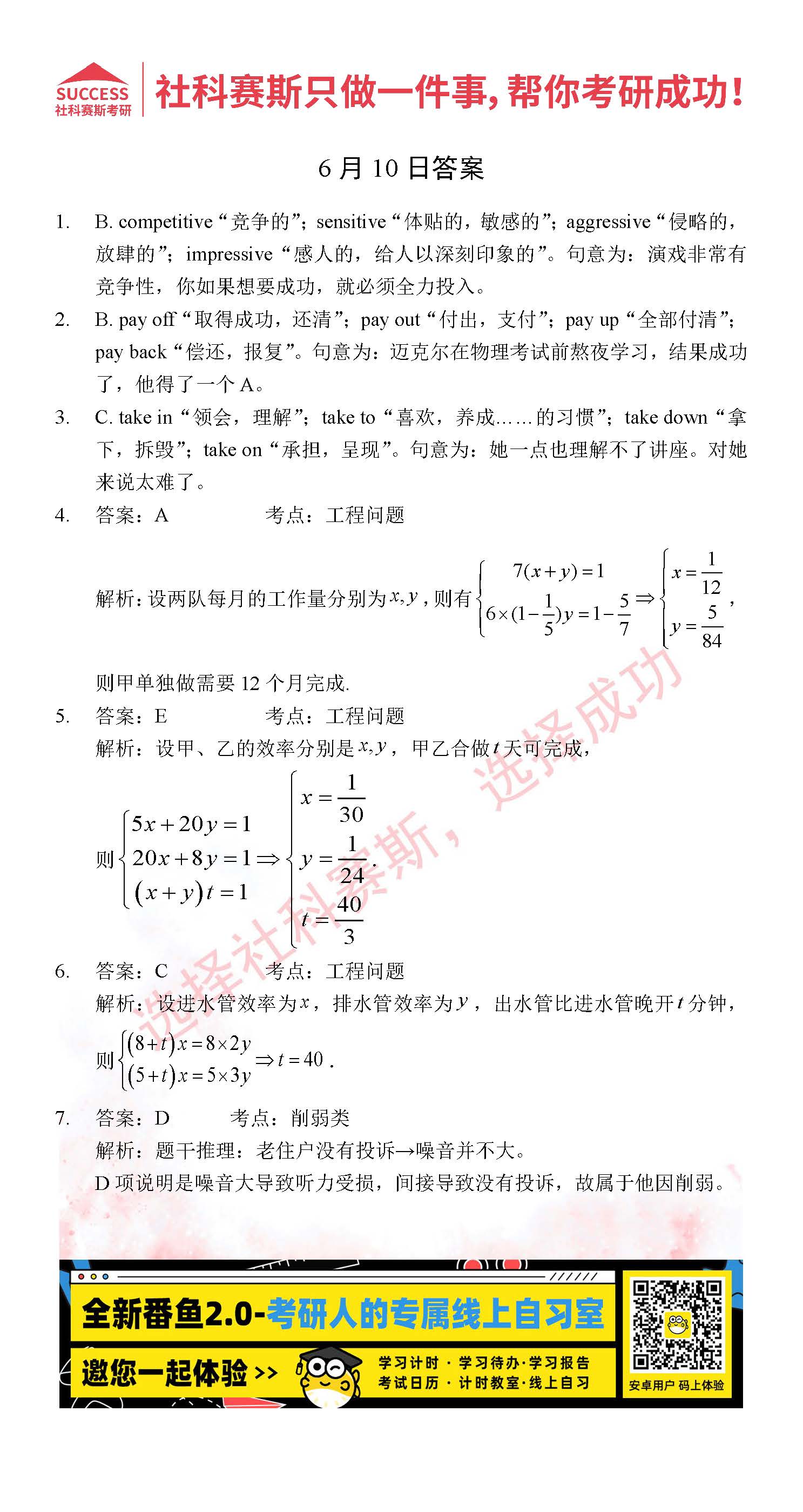 以上就是社科賽斯考研網(wǎng)小編為大家整理2022考研每日一練:6月10日管理類聯(lián)考每日一練及答案的全部?jī)?nèi)容,希望各位考生堅(jiān)持利用起來(lái),更多每日一練內(nèi)容請(qǐng)持續(xù)關(guān)注社科賽斯考研網(wǎng)