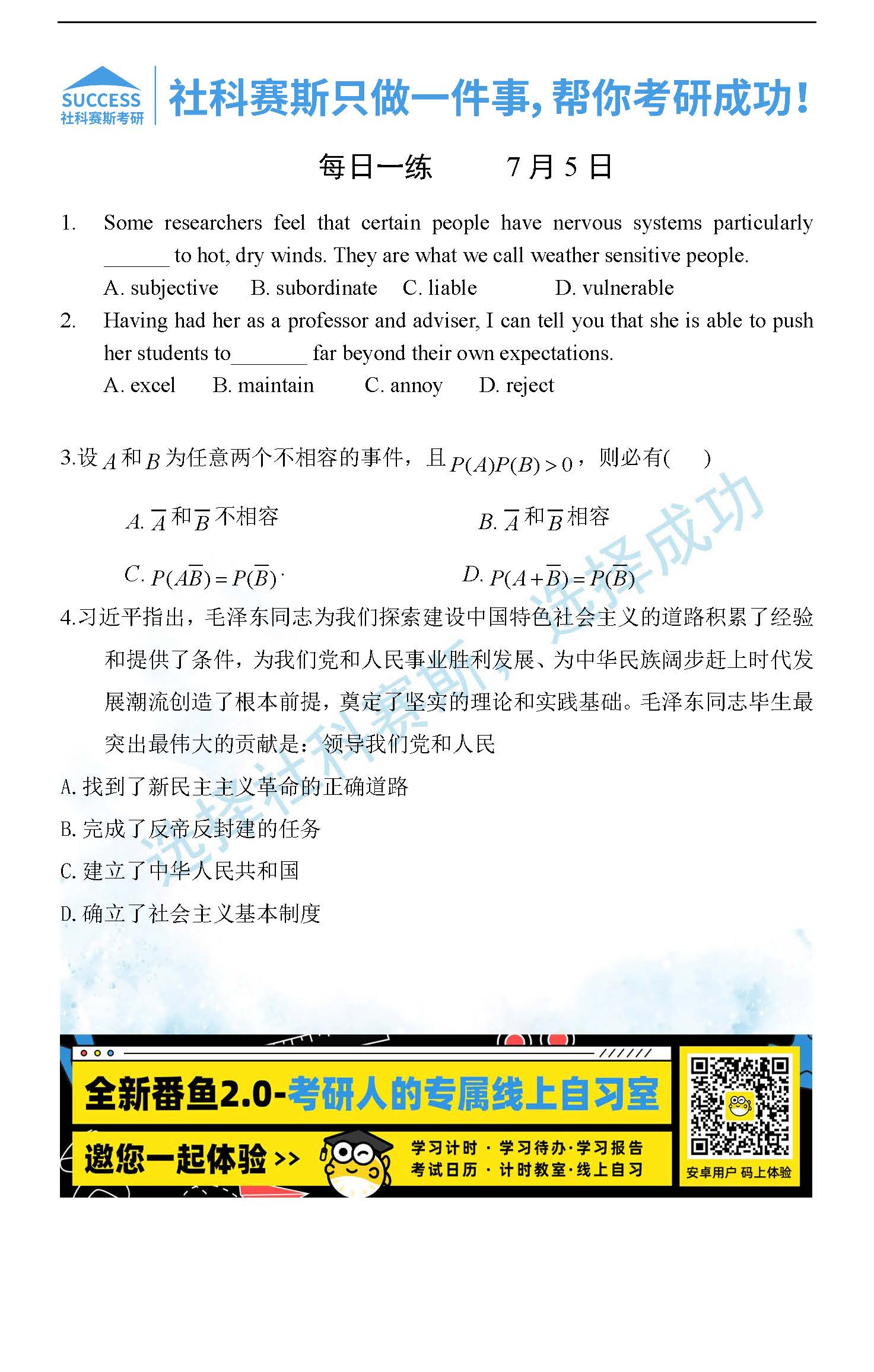 以上就是社科賽斯考研網小編為大家整理2022考研每日一練:7月5日管理類聯考每日一練及答案的全部內容,希望各位考生堅持利用起來,更多每日一練內容請持續關注社科賽斯考研網