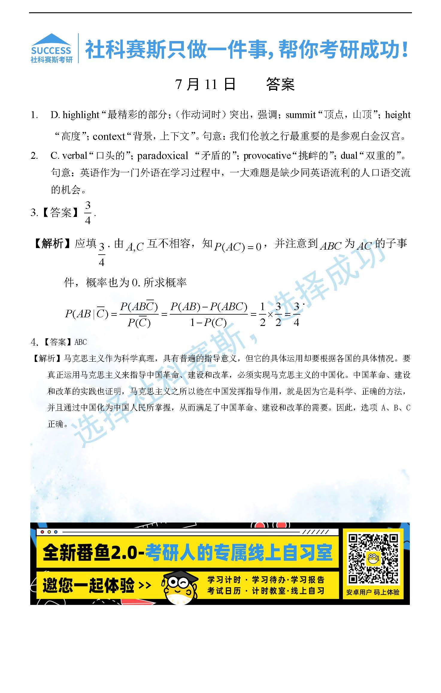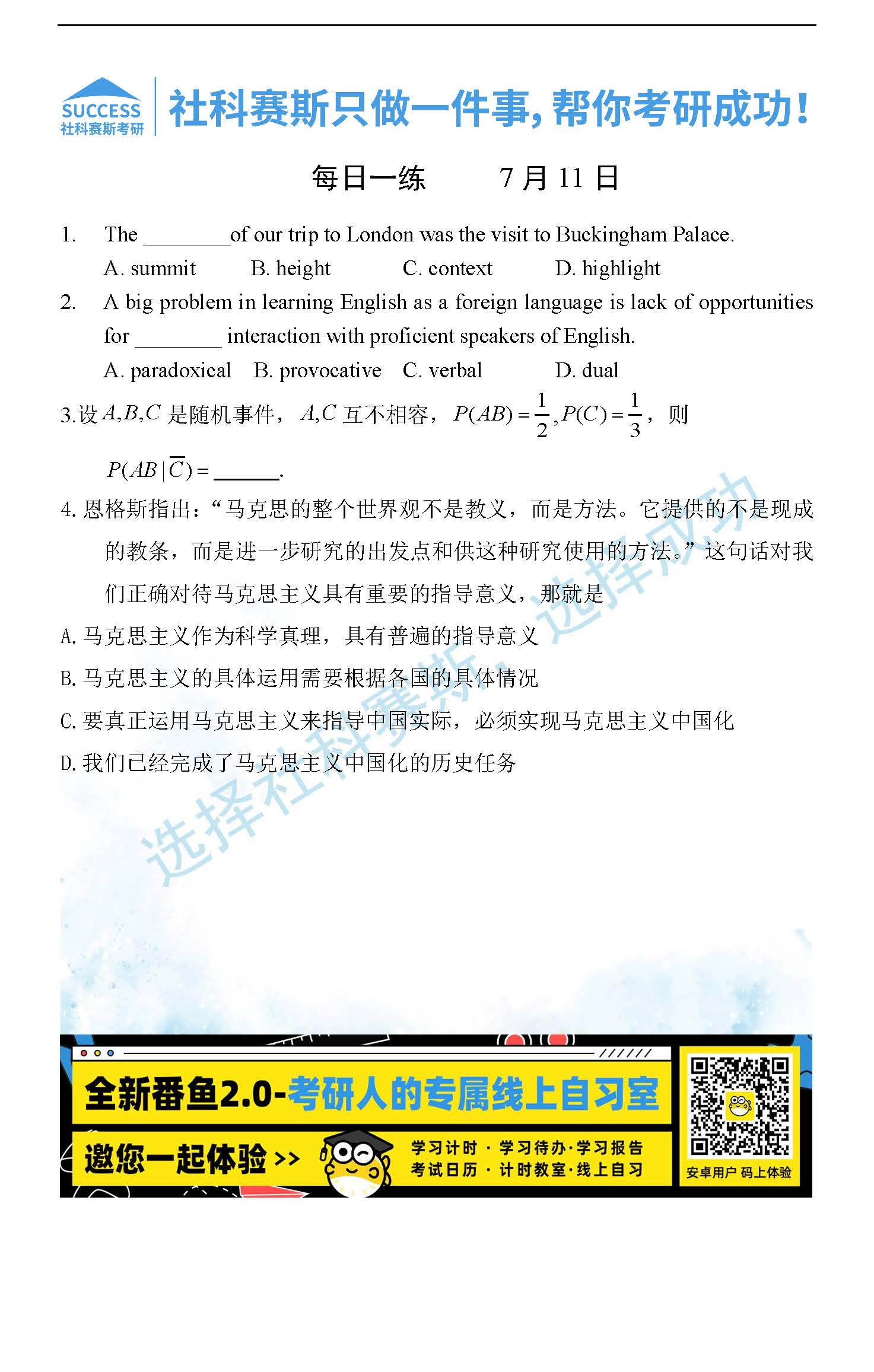 2022考研每日一練:7月11日管理類聯考每日一練及答案