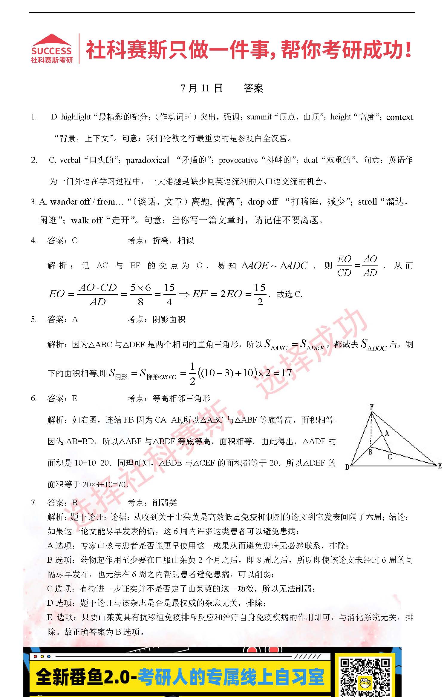 以上就是社科賽斯考研網小編為大家整理2022考研每日一練:7月11日管理類聯考每日一練及答案的全部內容,希望各位考生堅持利用起來,更多每日一練內容請持續關注社科賽斯考研網