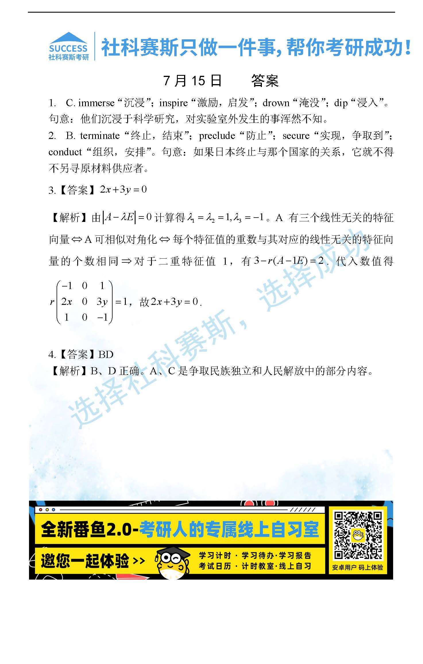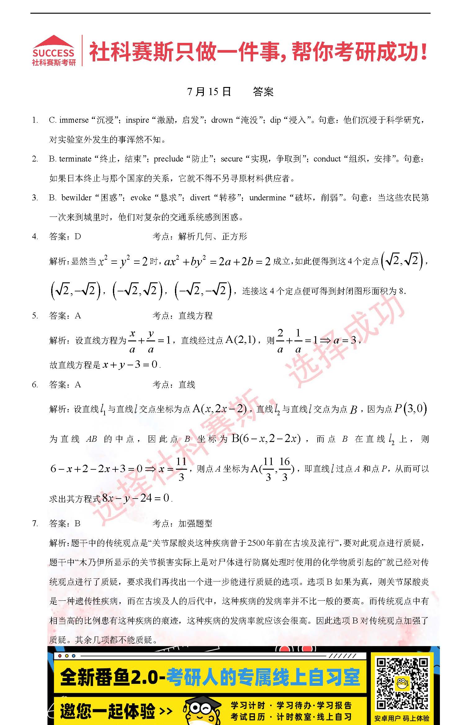 考研是一場(chǎng)持久戰(zhàn),保持良好的學(xué)習(xí)習(xí)慣,是能確保復(fù)習(xí)高效的關(guān)鍵。今天社科賽斯考研網(wǎng)小編整理了“2022考研每日一練:7月15日管理類(lèi)聯(lián)考每日一練及答案”的內(nèi)容,希望能對(duì)廣大考生有所幫助。