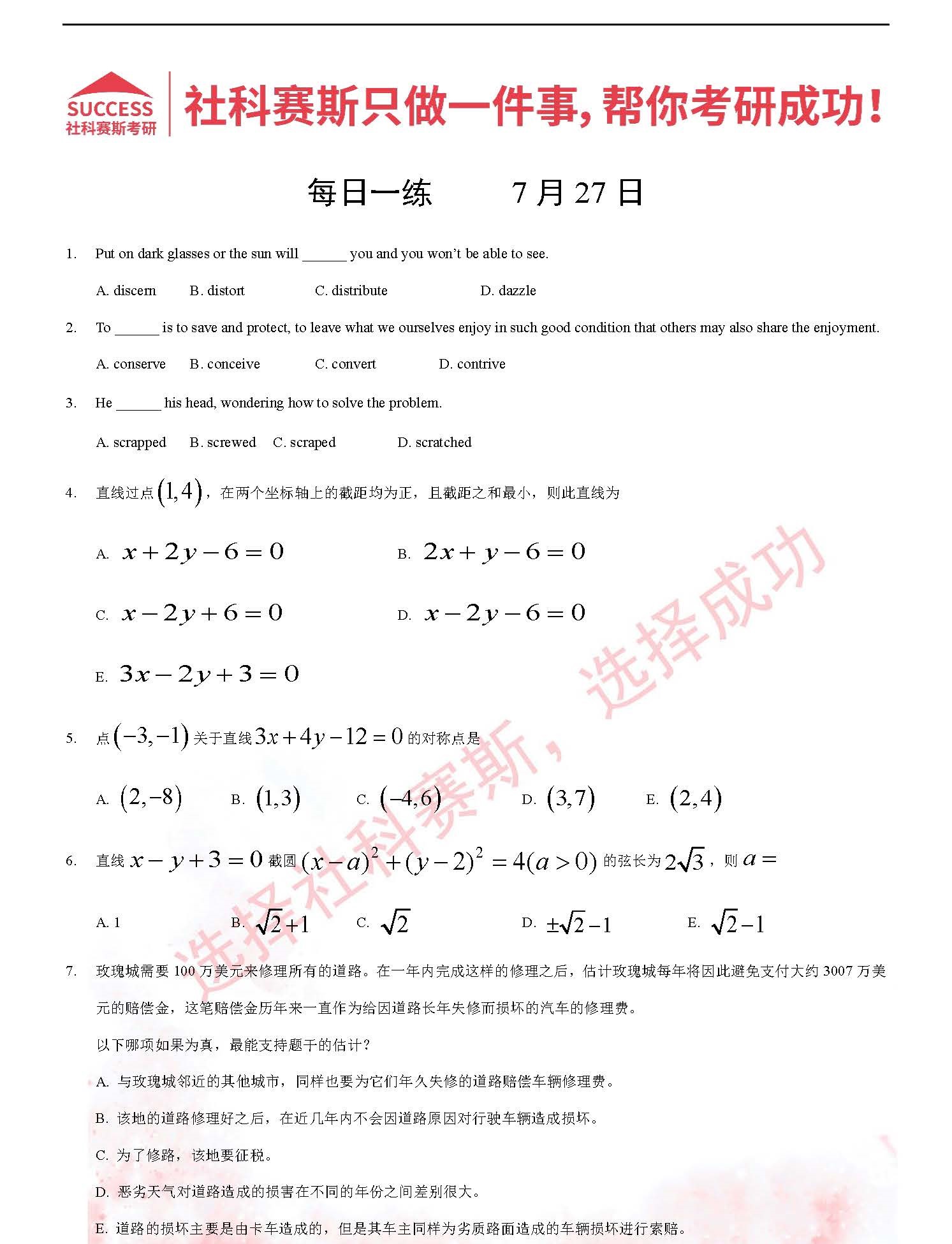 2022考研每日一練:7月27日管理類聯(lián)考每日一練及答案