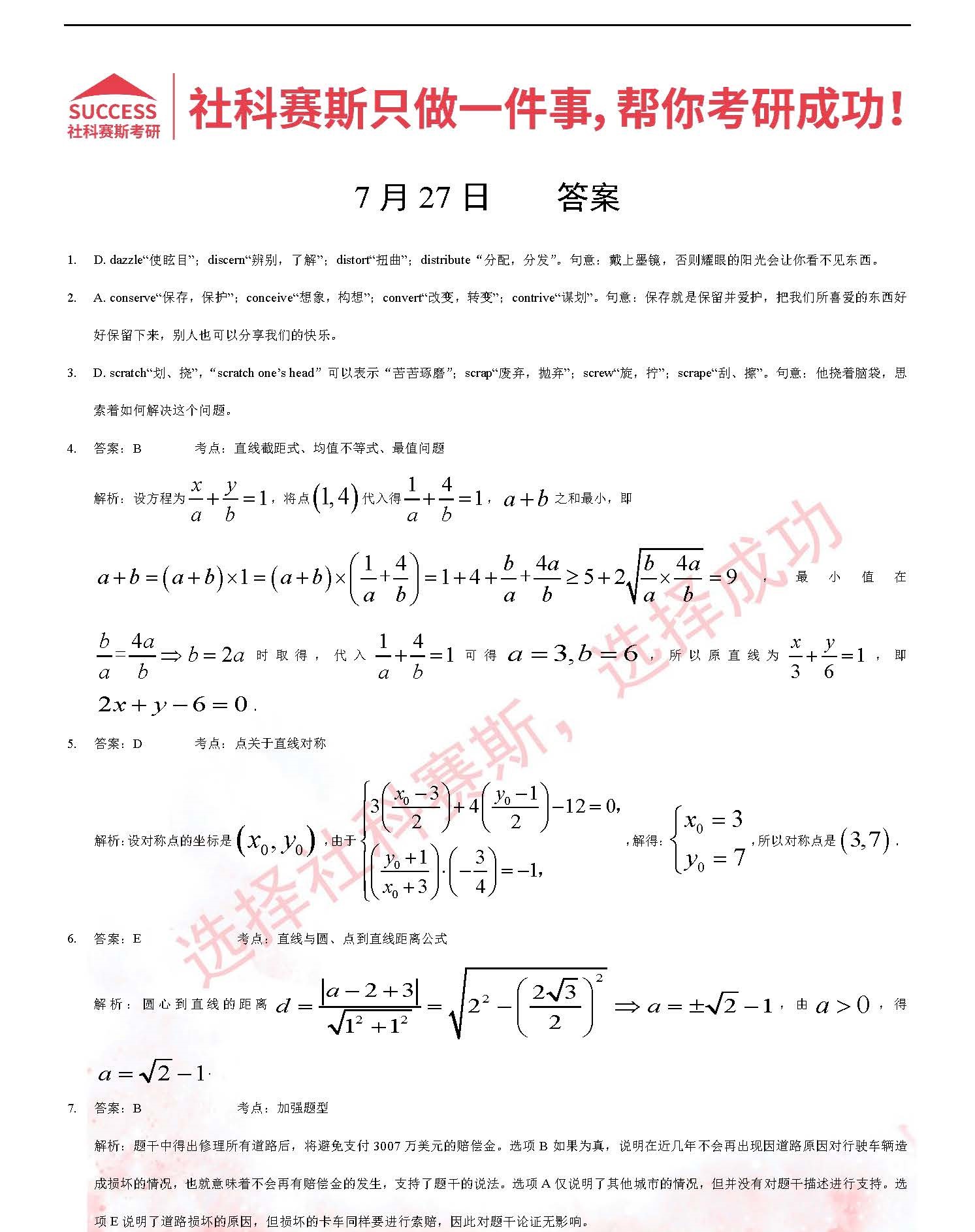 以上就是社科賽斯考研網(wǎng)小編為大家整理2022考研每日一練:7月27日管理類聯(lián)考每日一練及答案的全部?jī)?nèi)容,希望各位考生堅(jiān)持利用起來,更多每日一練內(nèi)容請(qǐng)持續(xù)關(guān)注社科賽斯考研網(wǎng)