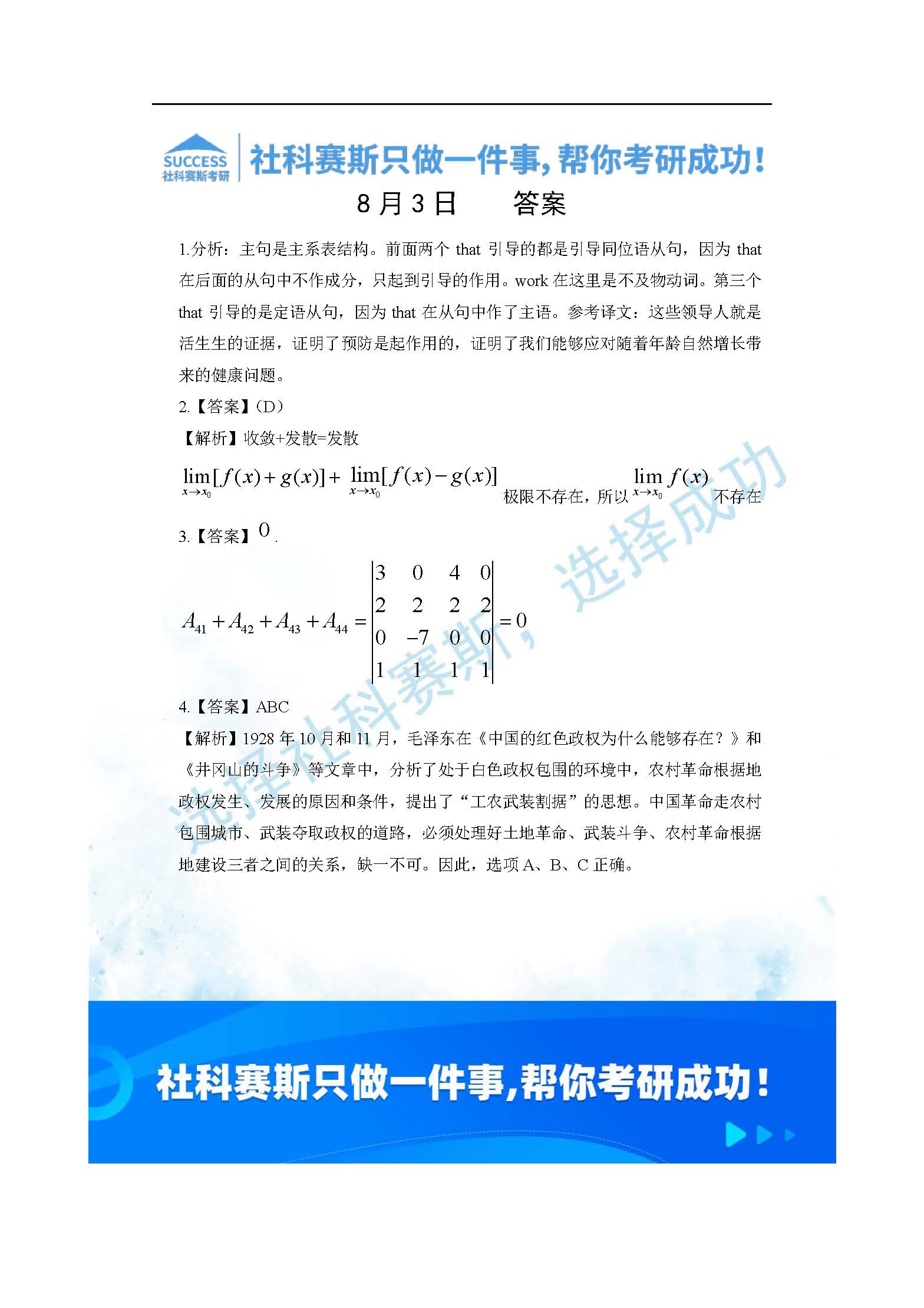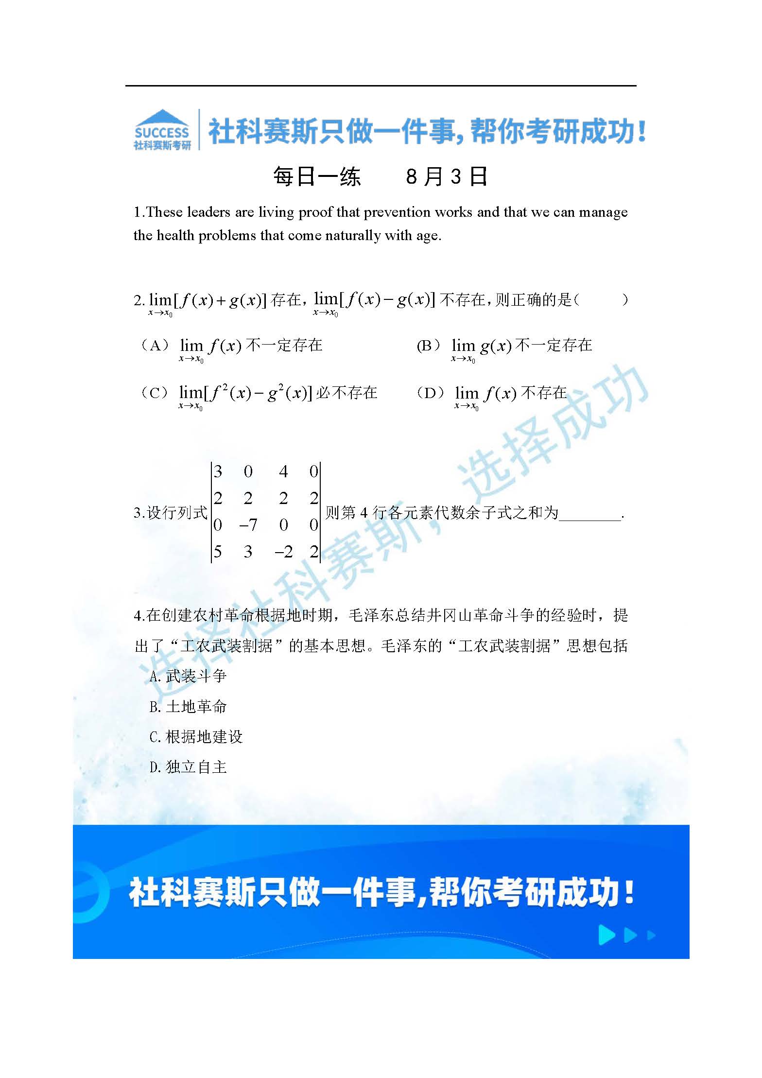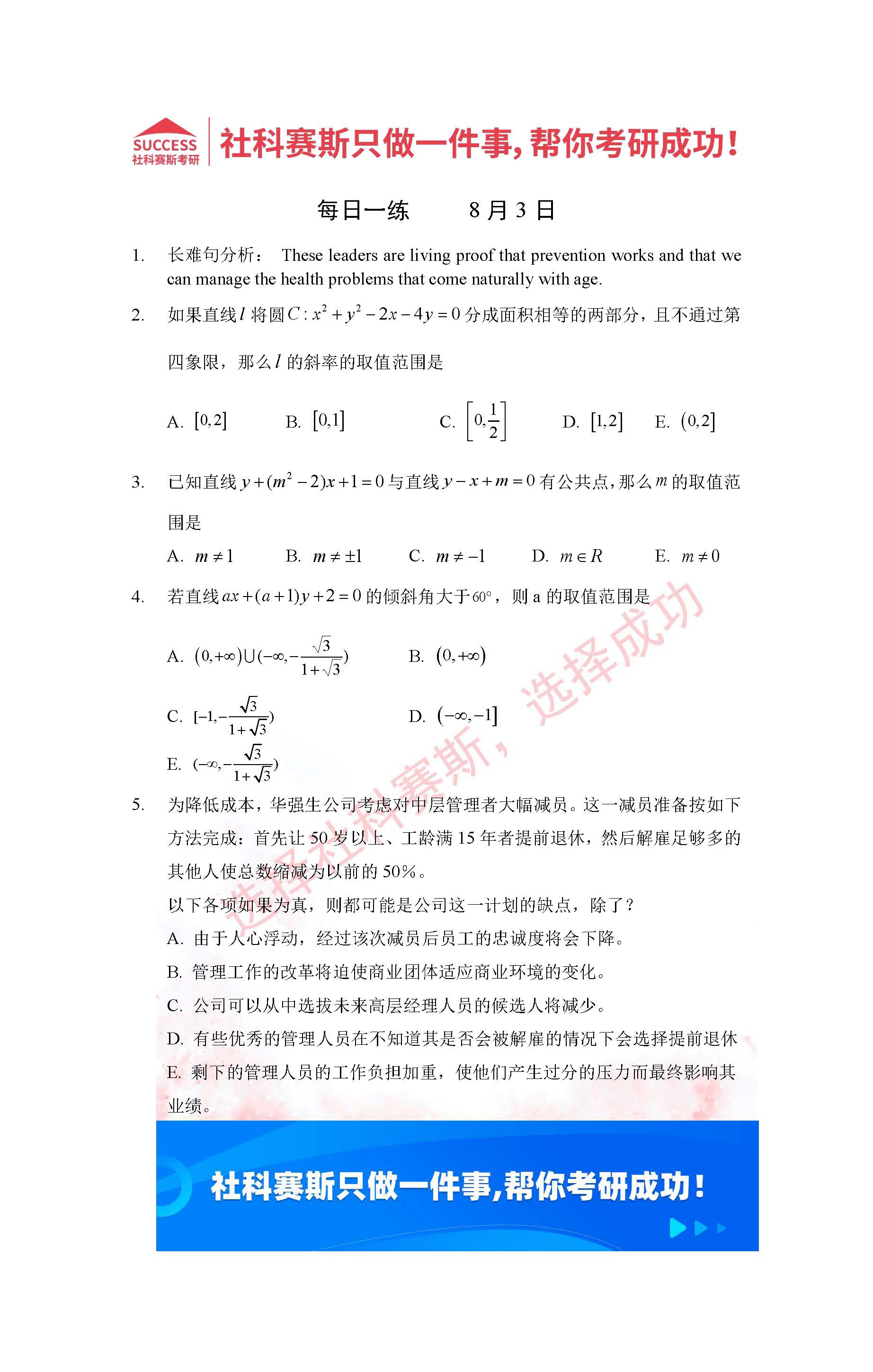 以上就是社科賽斯考研網小編為大家整理2022考研每日一練:8月3日管理類聯考每日一練及答案的全部內容,希望各位考生堅持利用起來,更多每日一練內容請持續關注社科賽斯考研網