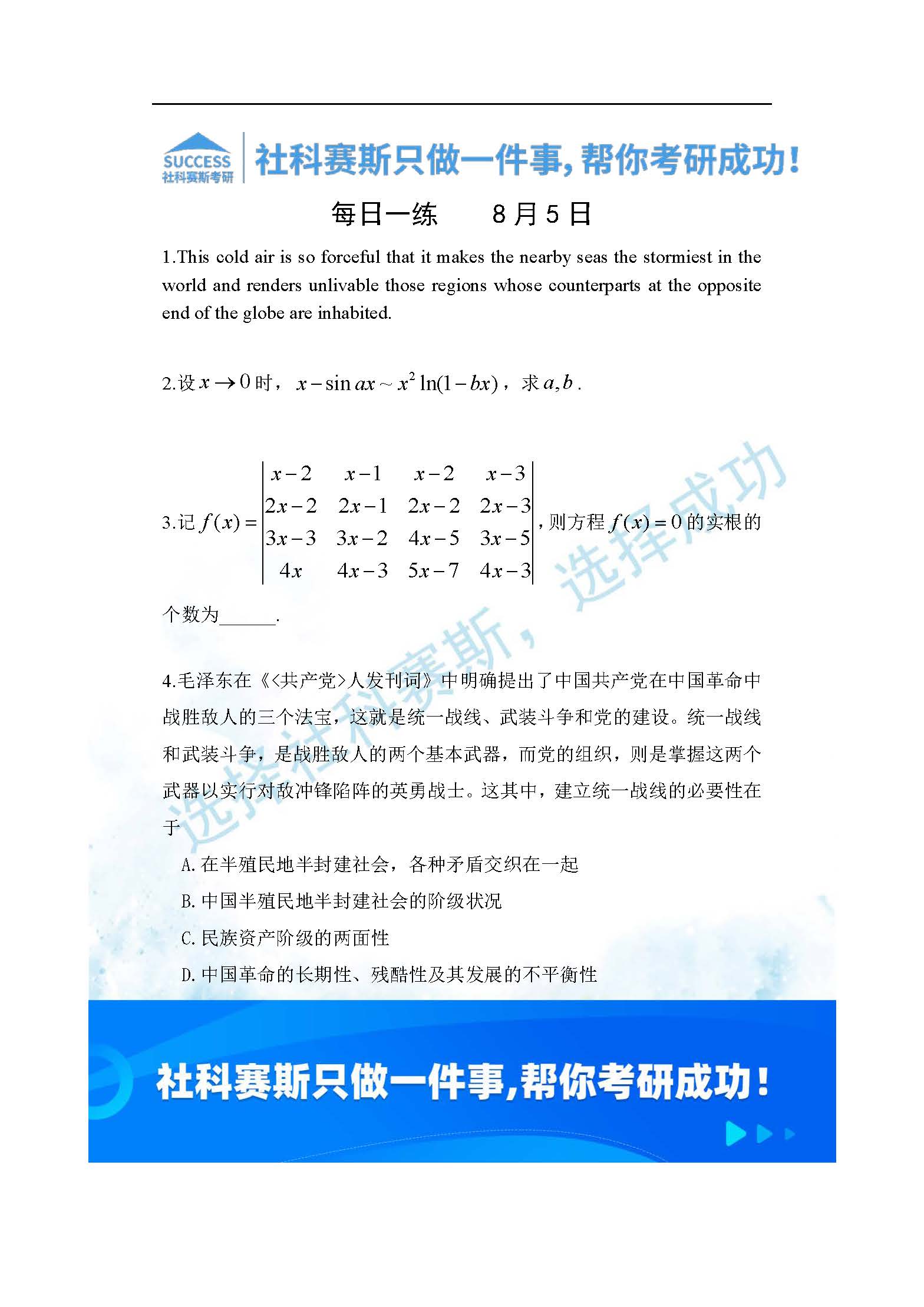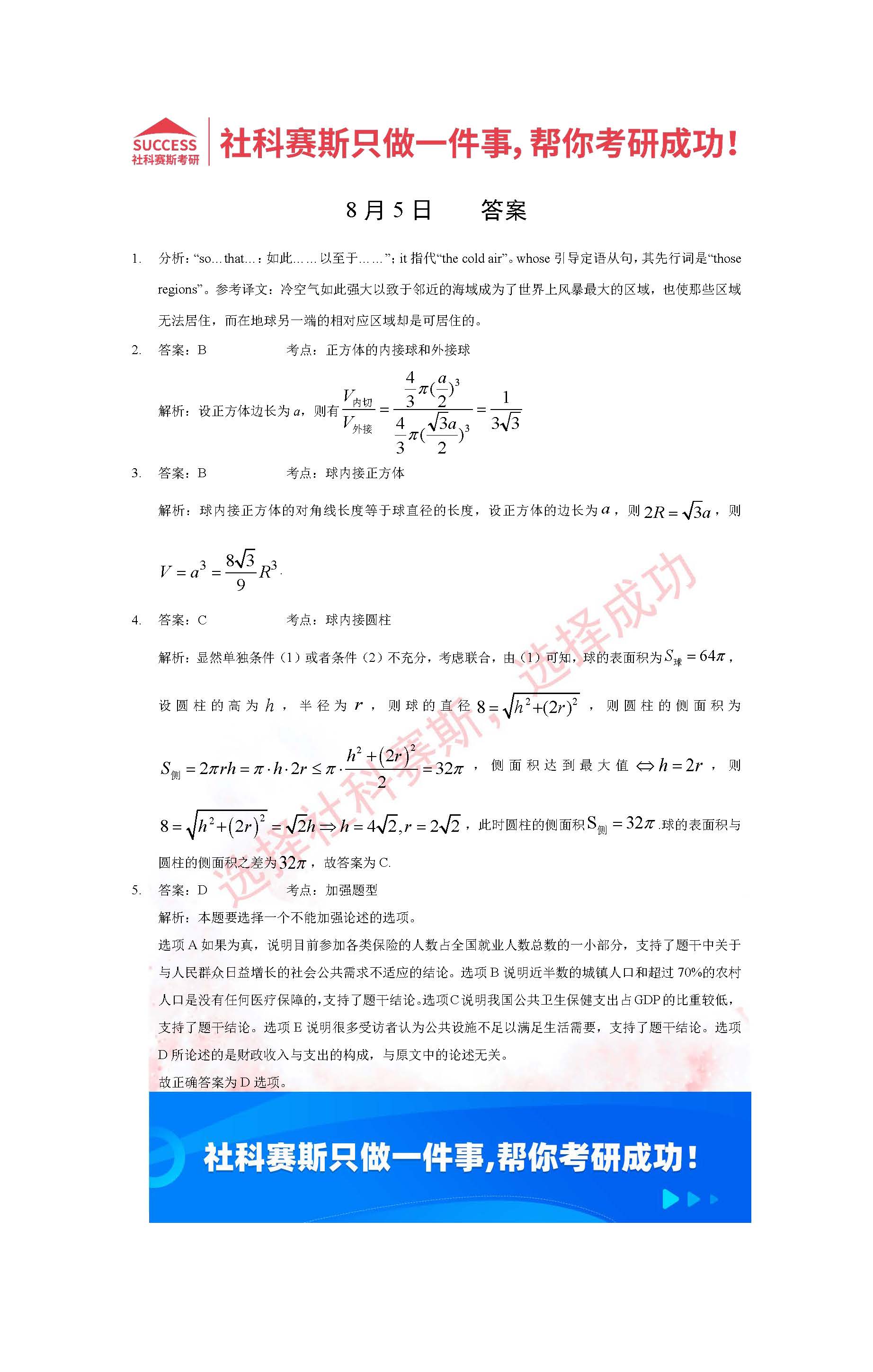 以上就是社科賽斯考研網小編為大家整理2022考研每日一練:8月5日管理類聯考每日一練及答案的全部內容,希望各位考生堅持利用起來,更多每日一練內容請持續關注社科賽斯考研網