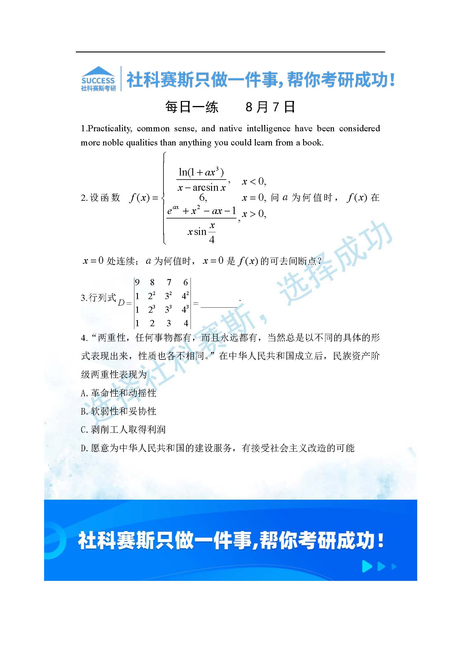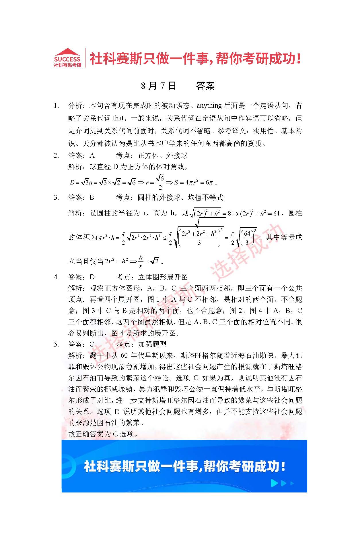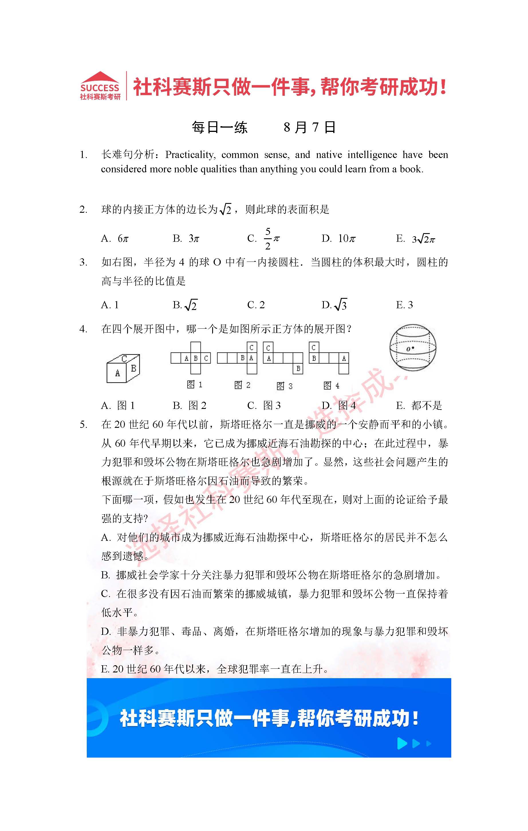 以上就是社科賽斯考研網(wǎng)小編為大家整理2022考研每日一練:8月7日管理類聯(lián)考每日一練及答案的全部內(nèi)容,希望各位考生堅持利用起來,更多每日一練內(nèi)容請持續(xù)關(guān)注社科賽斯考研網(wǎng)
