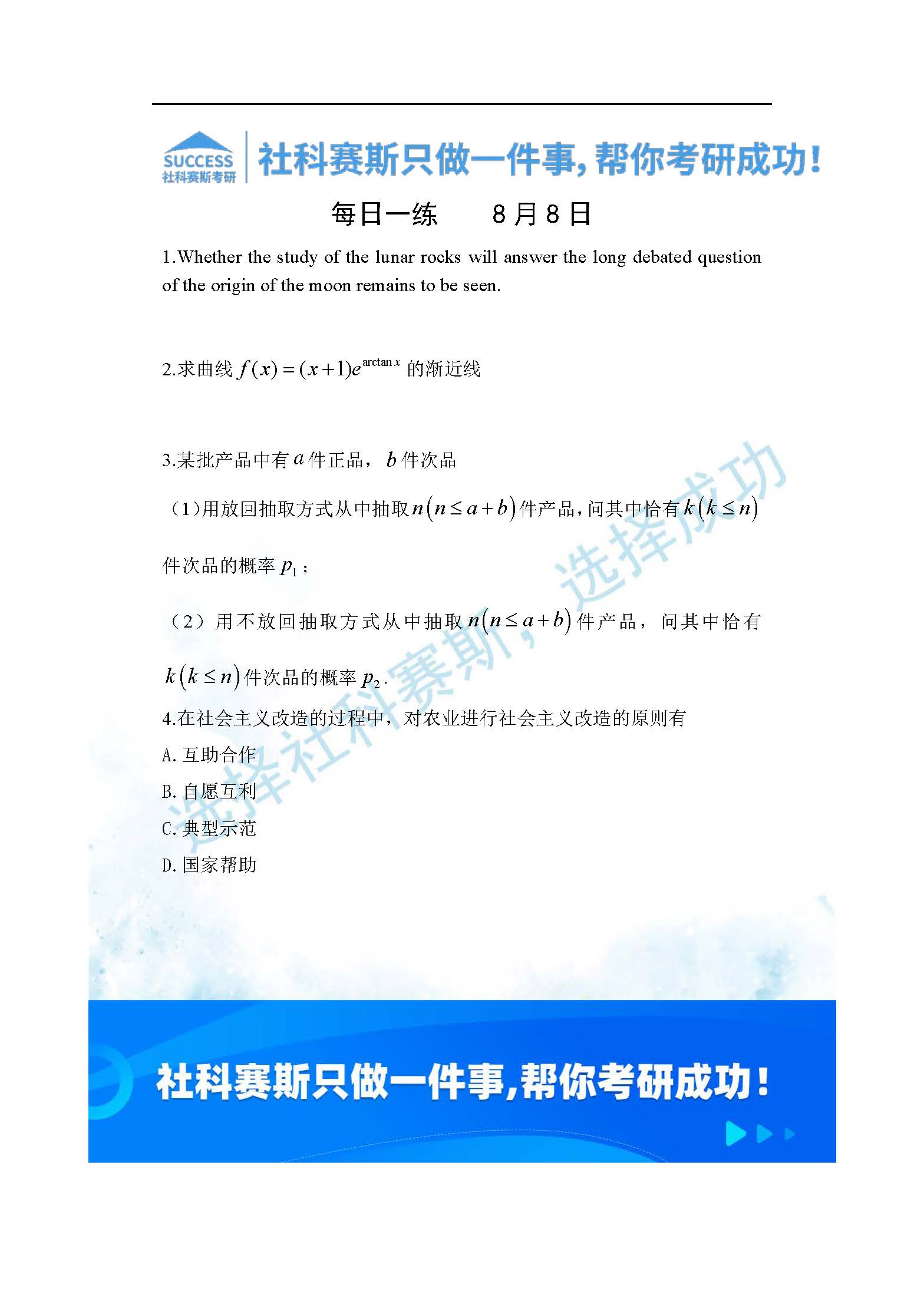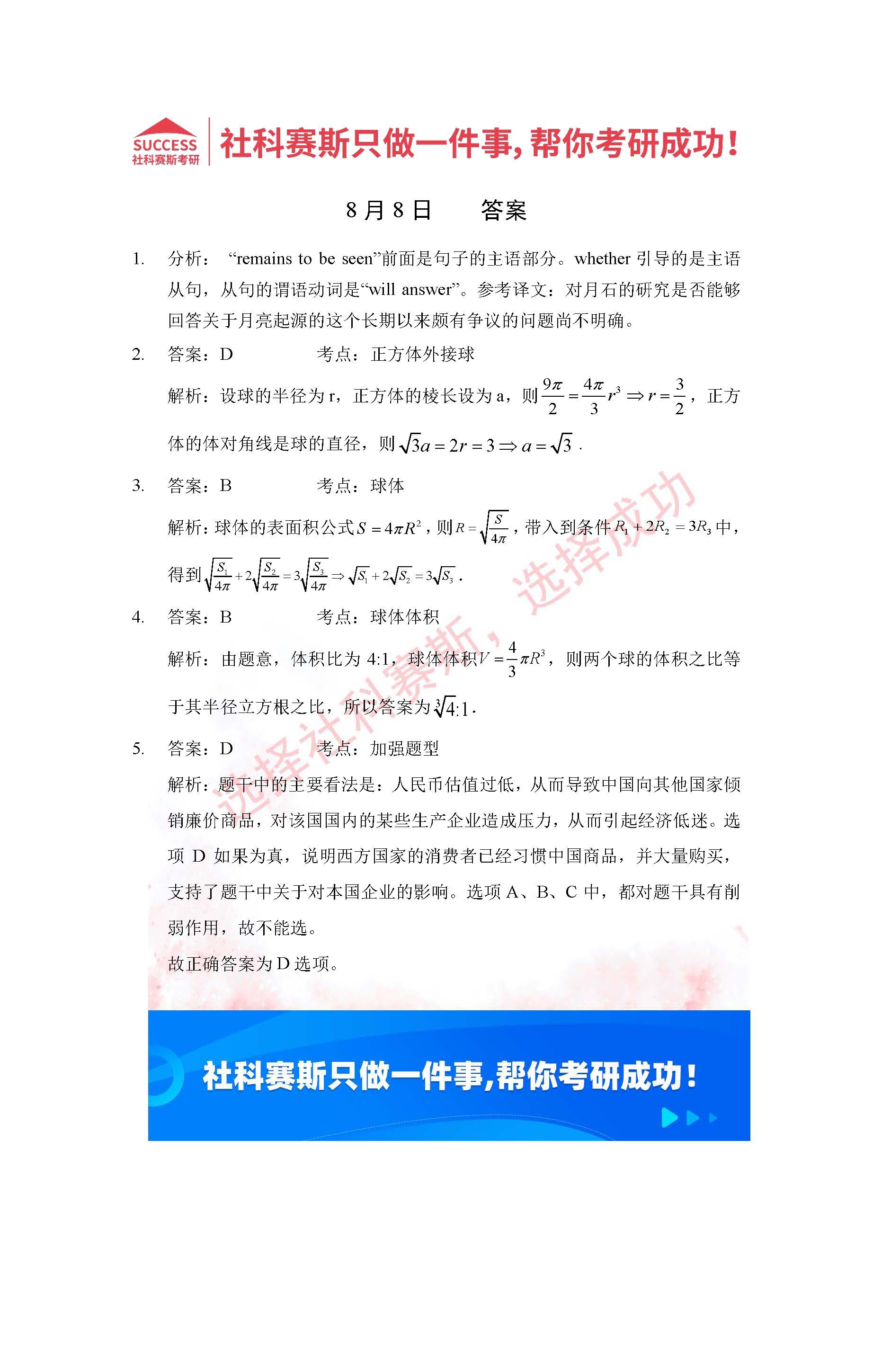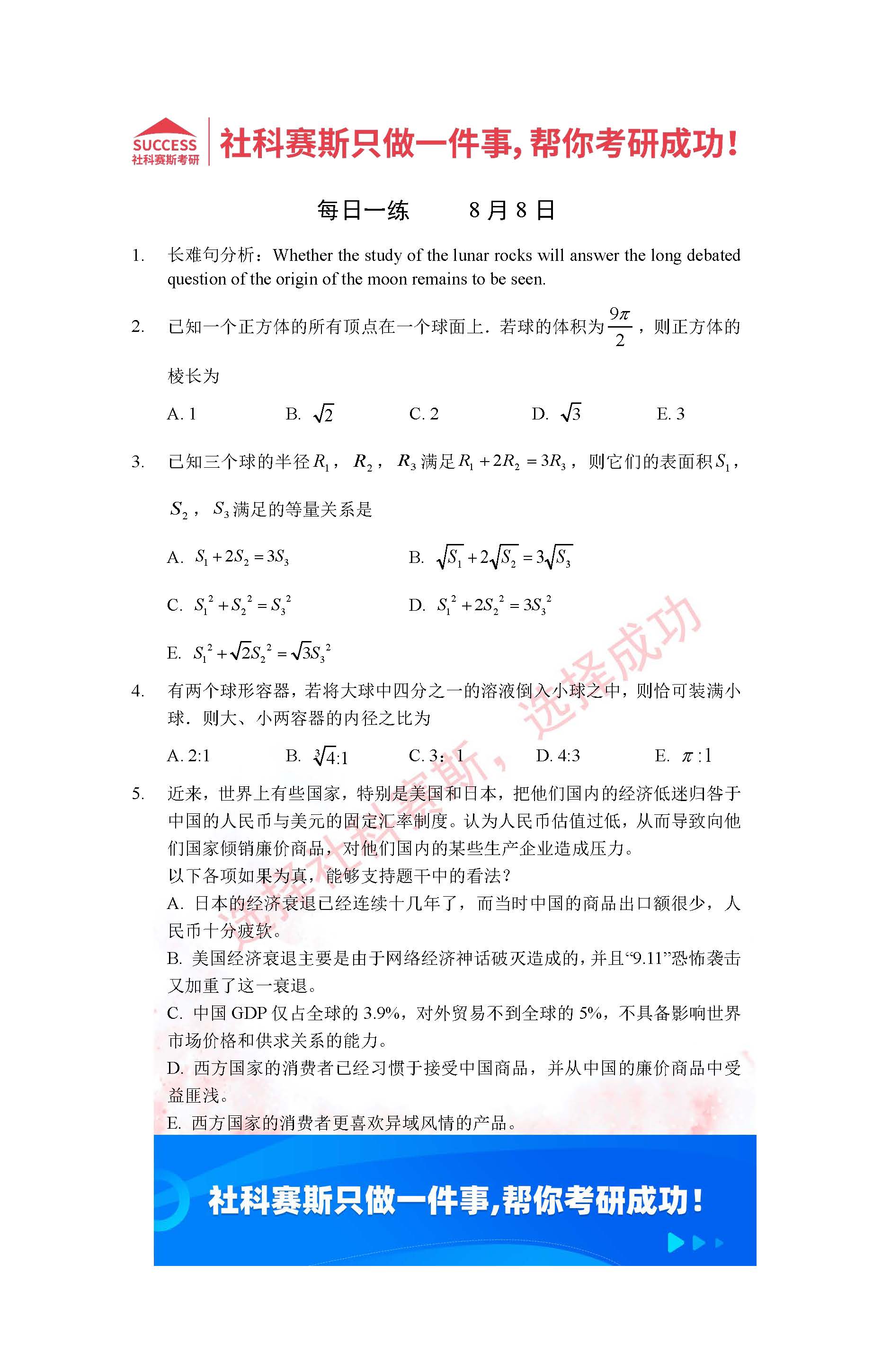 以上就是社科賽斯考研網(wǎng)小編為大家整理2022考研每日一練:8月8日管理類聯(lián)考每日一練及答案的全部內(nèi)容,希望各位考生堅持利用起來,更多每日一練內(nèi)容請持續(xù)關(guān)注社科賽斯考研網(wǎng)希望能對廣大考生有所幫助。