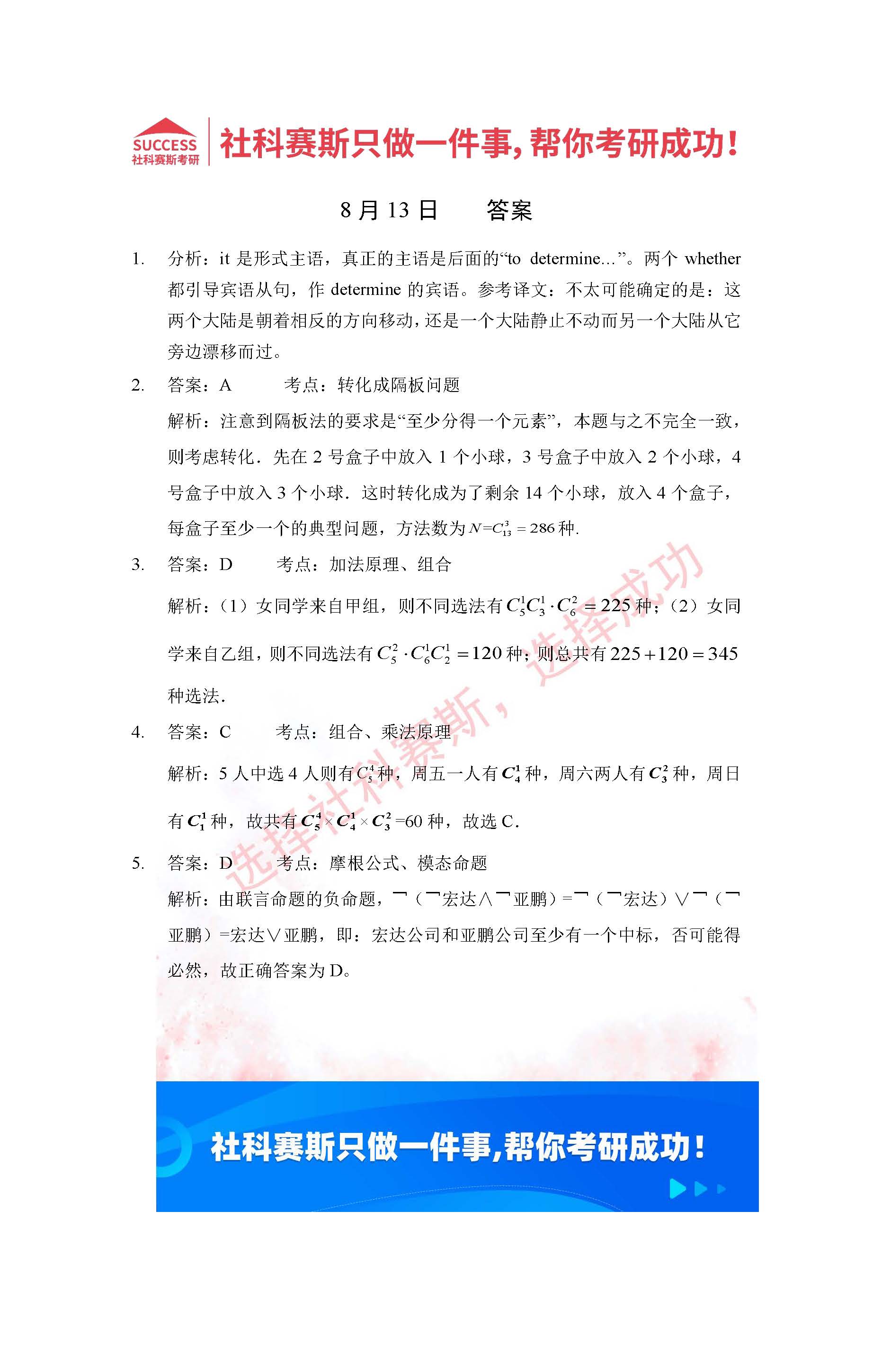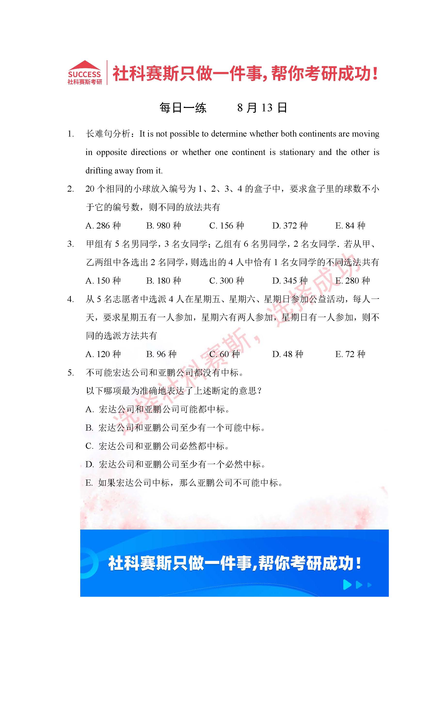 以上就是社科賽斯考研網小編為大家整理2022考研每日一練:8月13日管理類聯考每日一練及答案的全部內容,希望各位考生堅持利用起來,更多每日一練內容請持續關注社科賽斯考研網