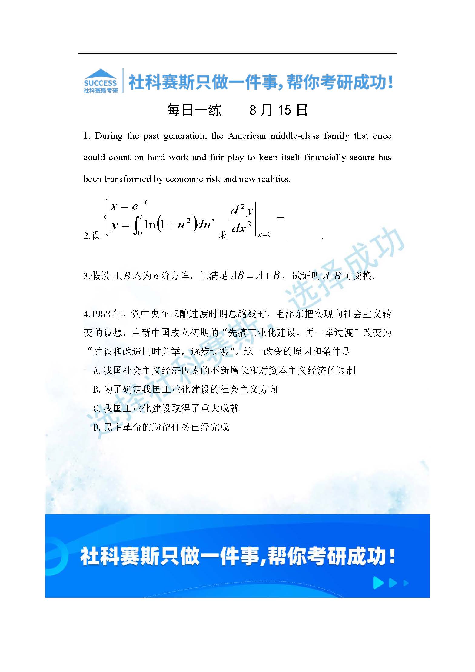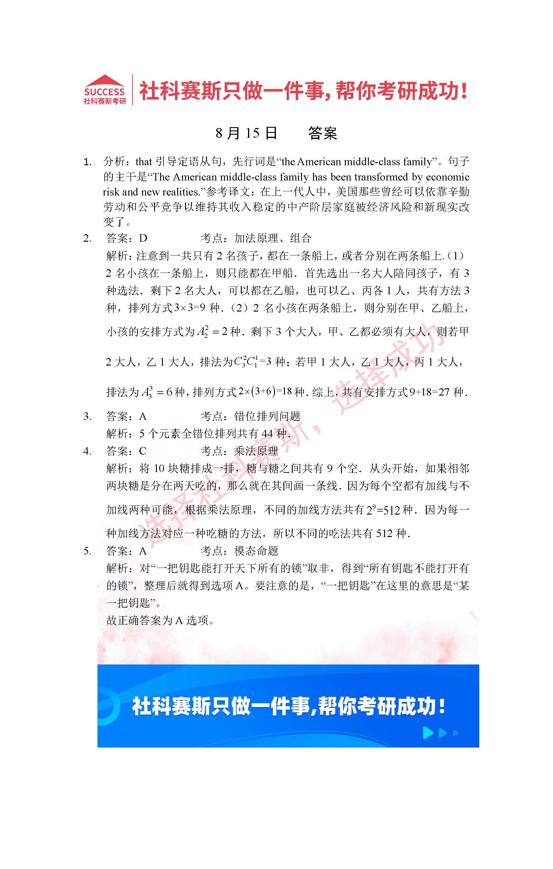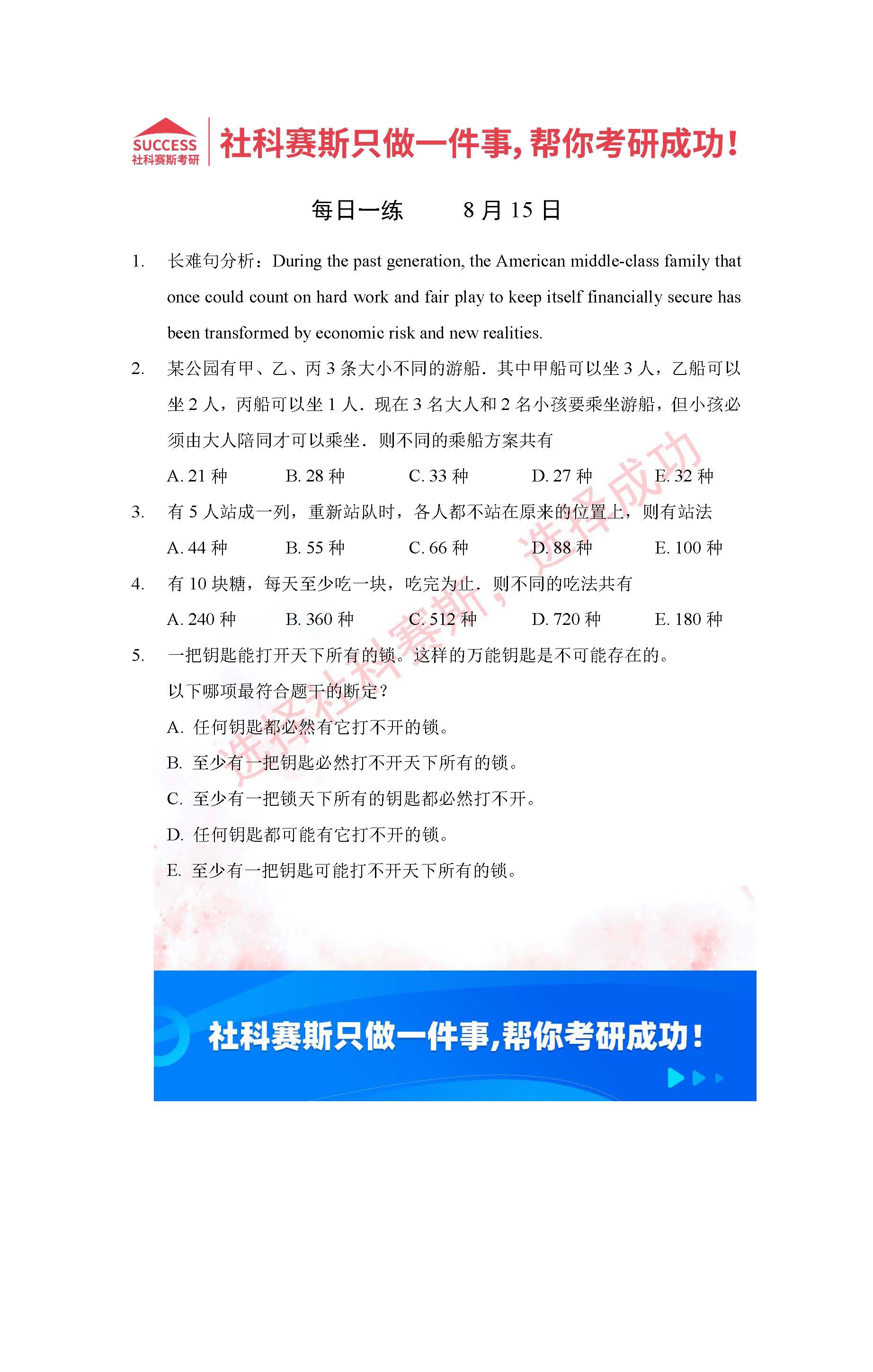 以上就是社科賽斯考研網小編為大家整理2022考研每日一練:8月15日管理類聯考每日一練及答案的全部內容,希望各位考生堅持利用起來,更多每日一練內容請持續關注社科賽斯考研網。