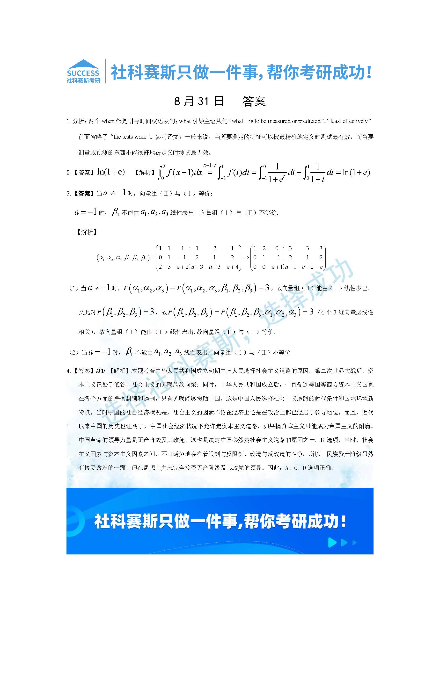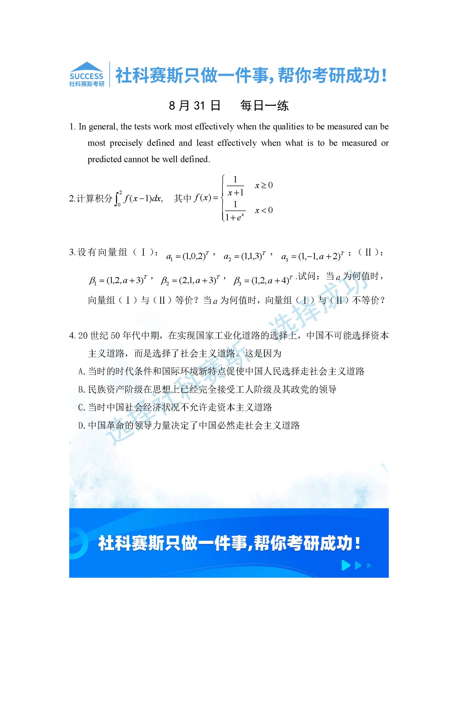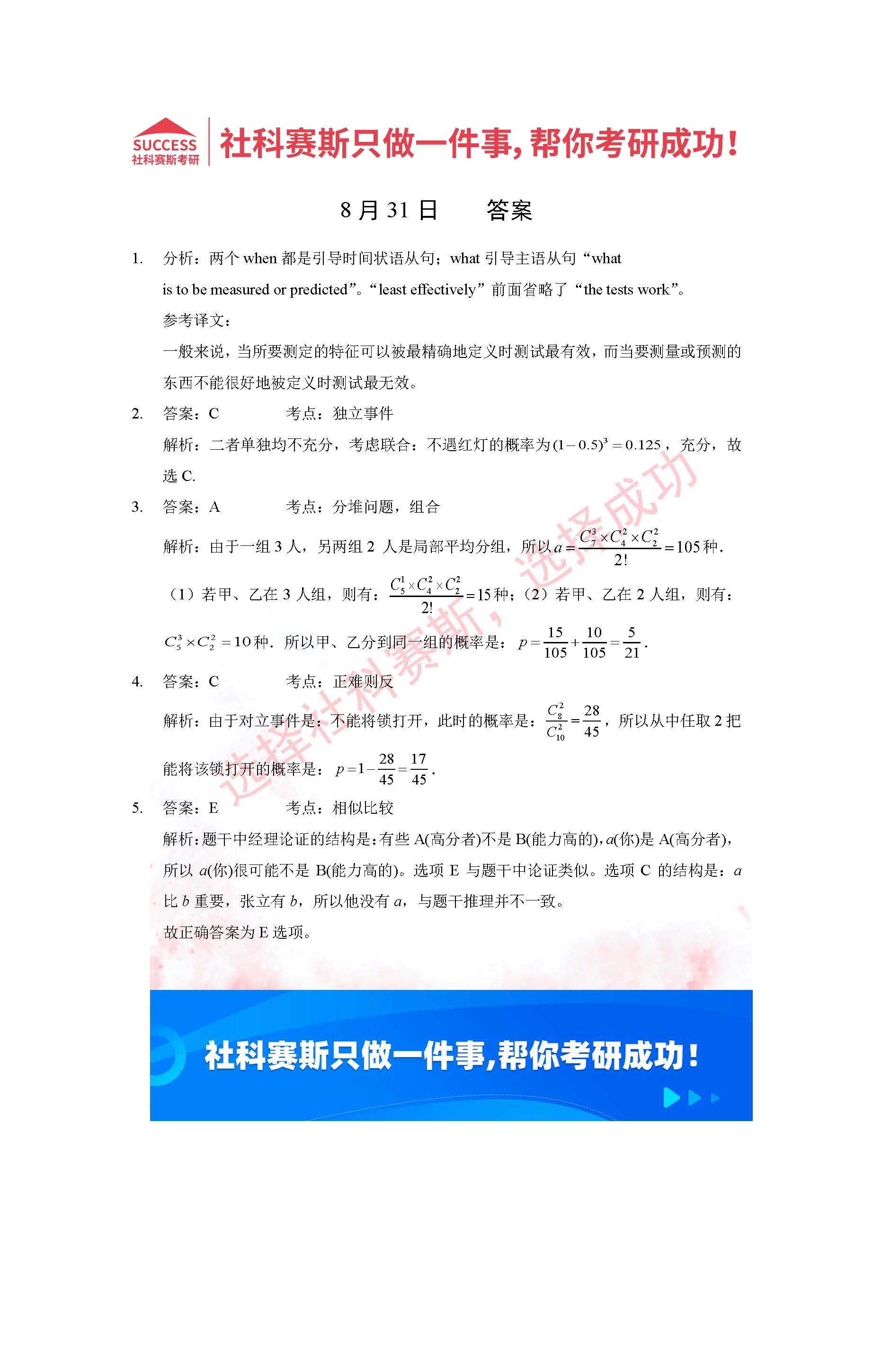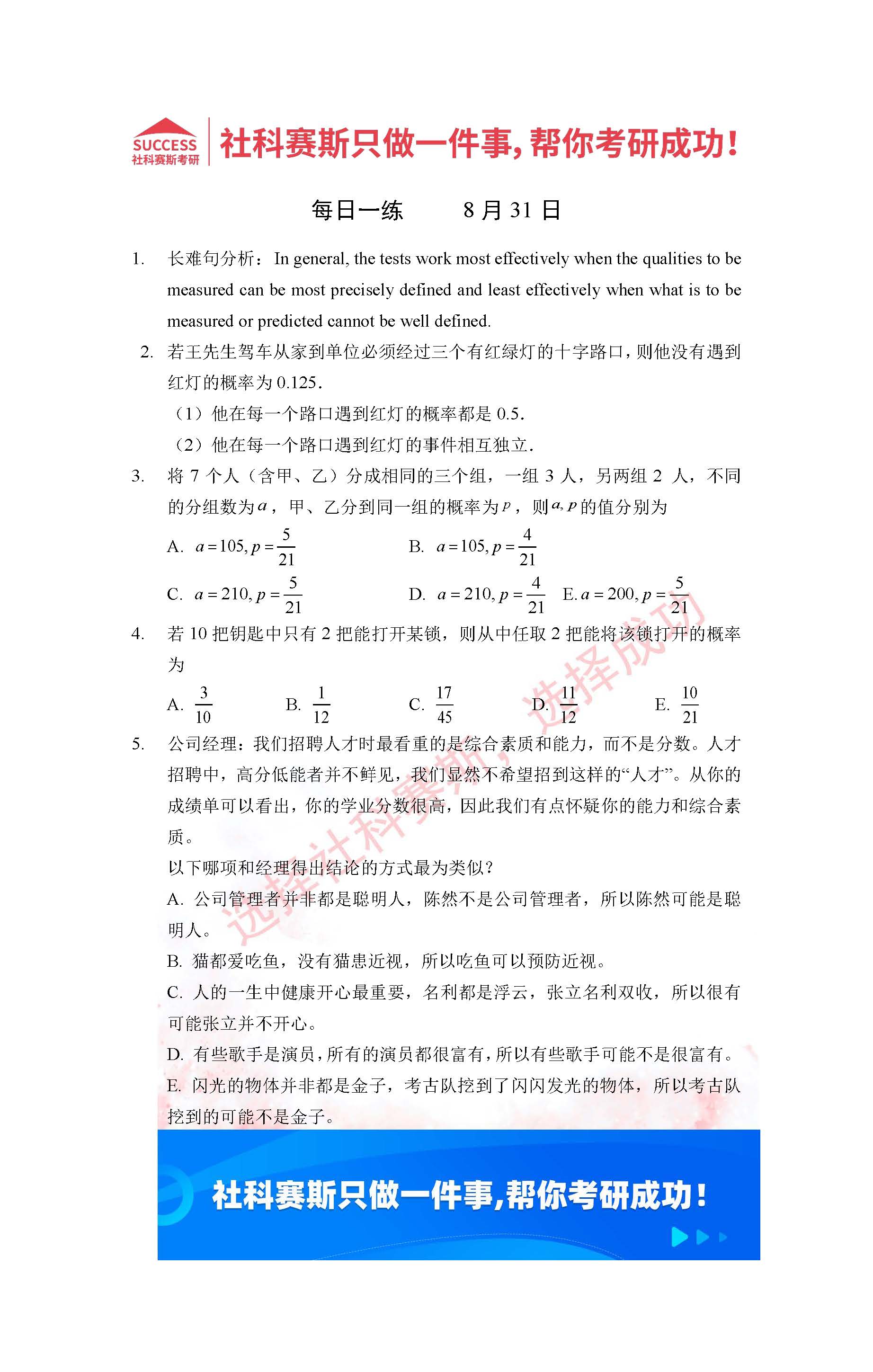 以上就是社科賽斯考研網小編為大家整理2022考研每日一練:8月31日管理類聯考每日一練及答案的全部內容,希望各位考生堅持利用起來,更多每日一練內容請持續關注社科賽斯考研網