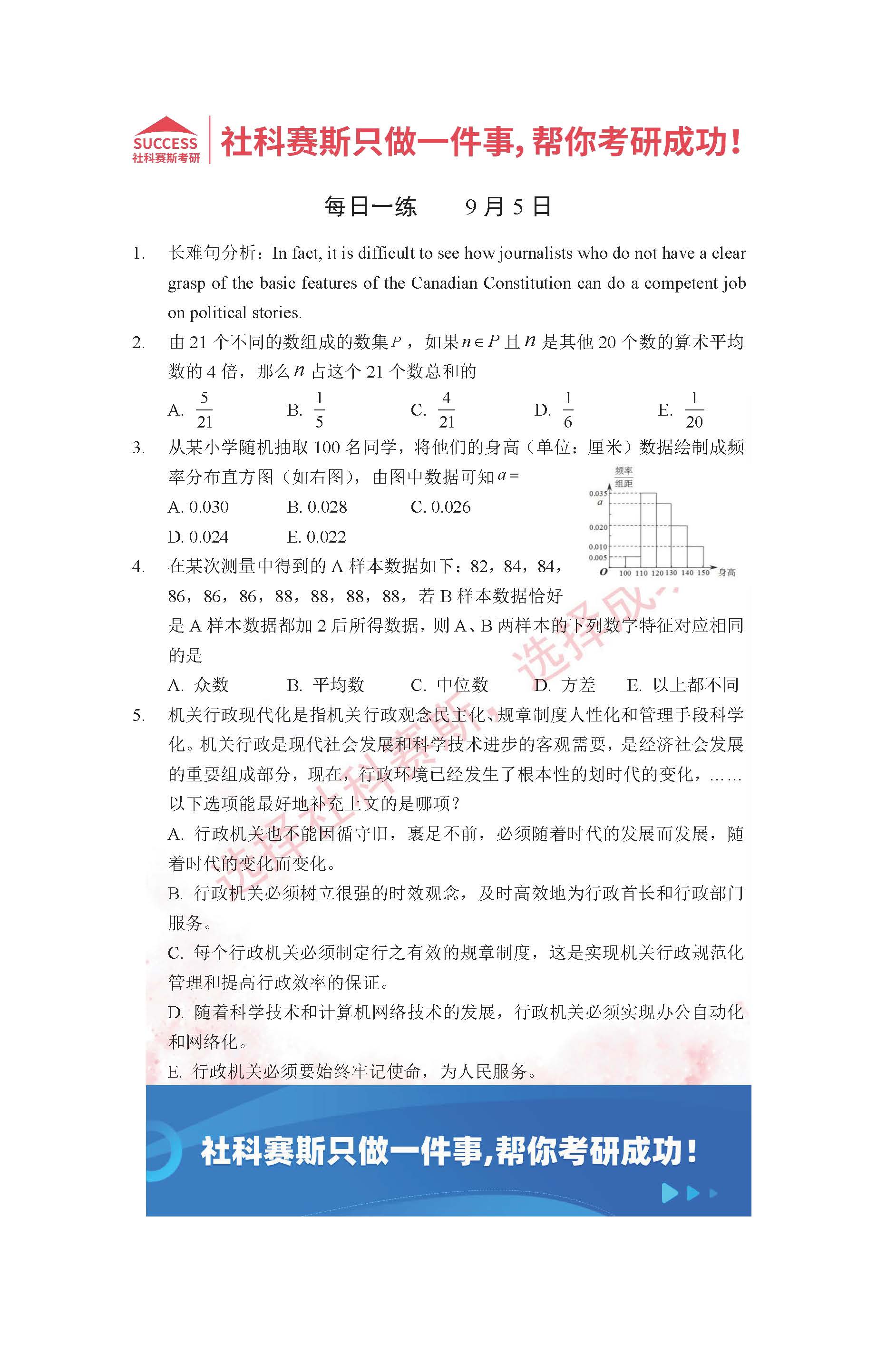 2022考研每日一練:9月5日管理類聯考每日一練及答案