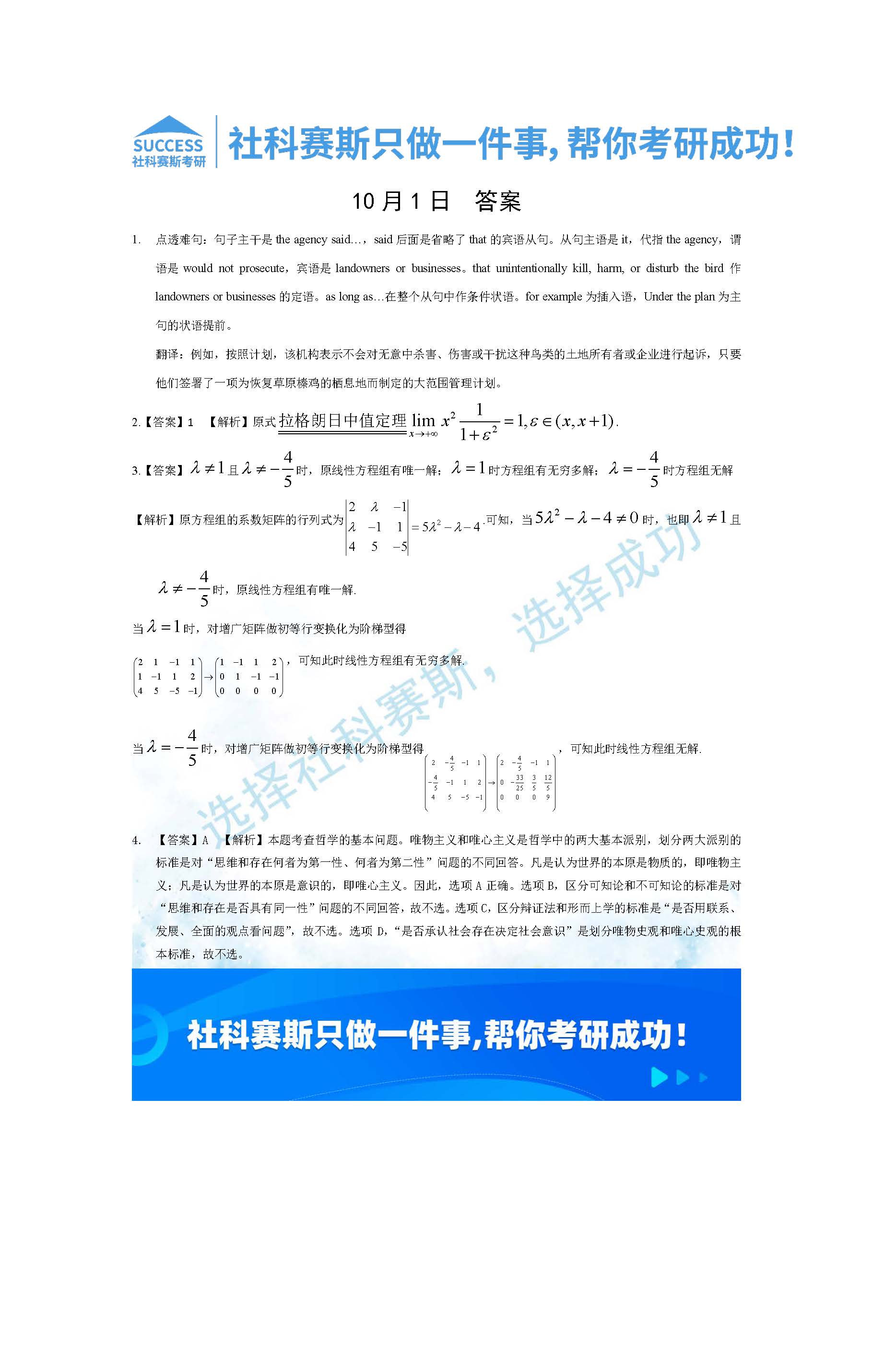 考研是一場持久戰(zhàn),保持良好的學(xué)習(xí)習(xí)慣,是能確保復(fù)習(xí)高效的關(guān)鍵。今天社科賽斯考研網(wǎng)小編整理了“2022考研每日一練:10月1日管理類聯(lián)考每日一練及答案”的內(nèi)容,希望能對廣大考生有所幫助。