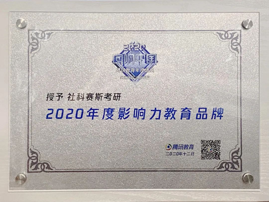 社科賽斯考研獲得”2020年度影響力教育品牌“獎項。