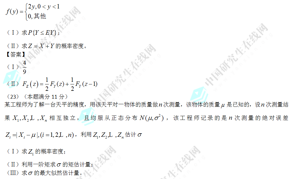 2017年全國(guó)碩士研究生入學(xué)統(tǒng)一考試數(shù)學(xué)(一)真題