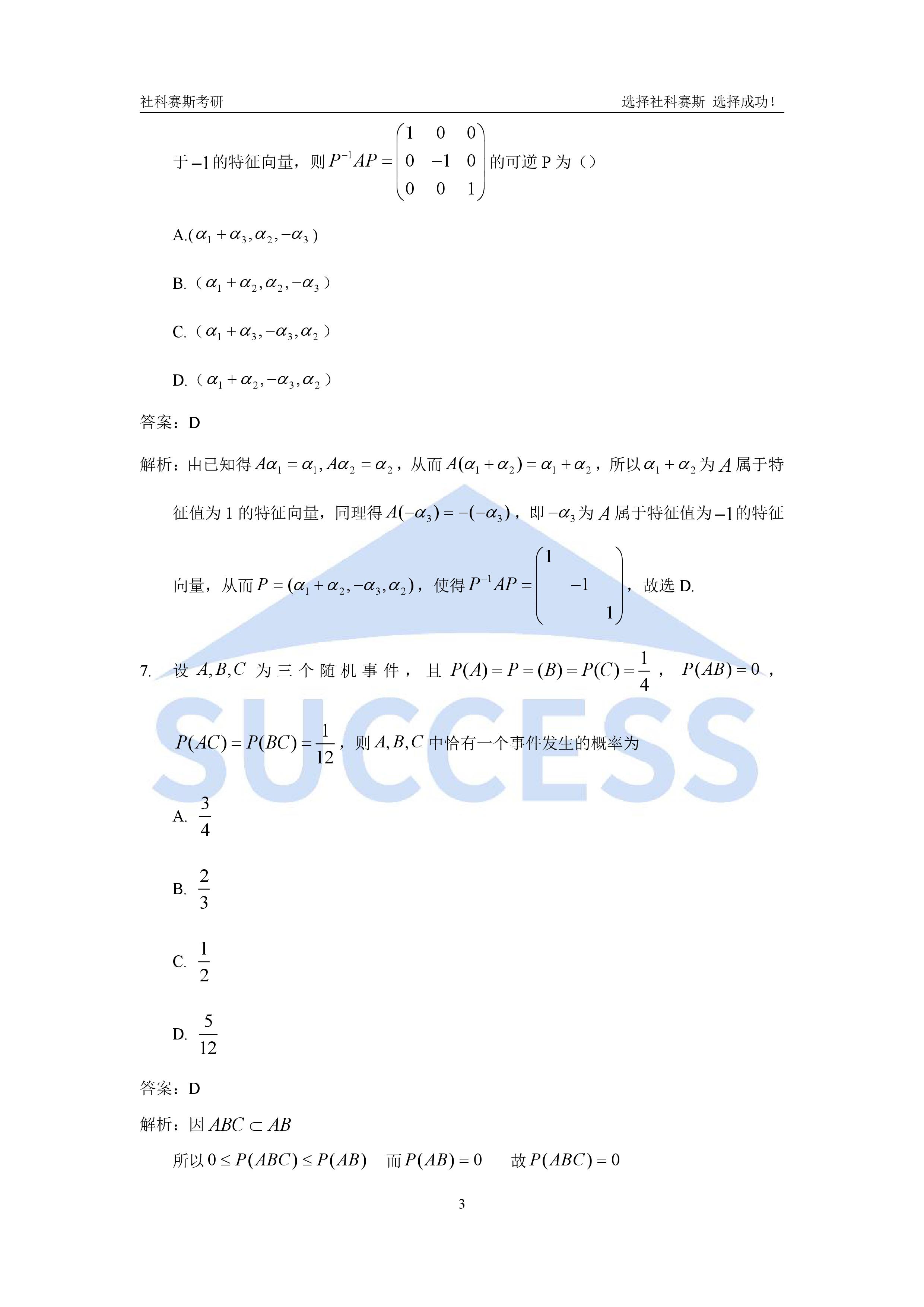 2020年全國碩士研究生考試考研數學(三)真題及解析
