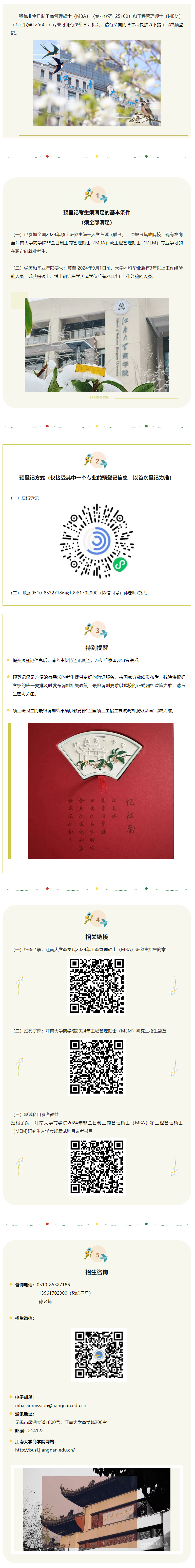 2024考研預調劑:江南大學MBA教育中心2024年MBA/MEM預調劑信息