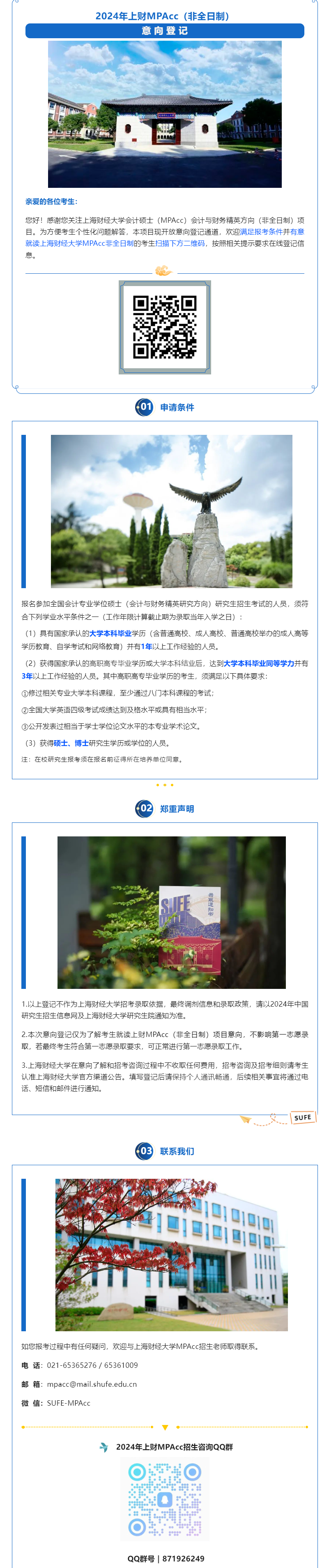 2024考研調(diào)劑:2024年上海財經(jīng)大學(xué)MPAcc(非全日制)意向登記通道開啟