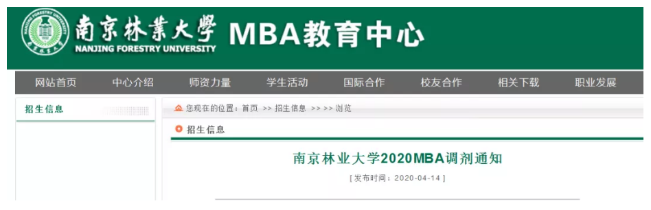 以上是小編整理的“MBA接受調劑的院校 | 南京林業大學2020年接受調劑的通知”的全部內容,更多關于MBA院校調劑信息,盡在研線網,預祝大家考研成功!