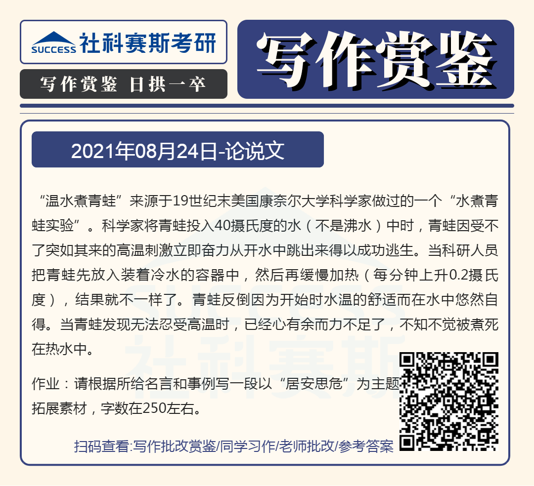以上就是小編為大家整理“管理類聯(lián)考寫作備考:8月24日寫作鑒賞及答案”的全部內(nèi)容,希望各位考生堅持利用起來,想要獲取更多內(nèi)容請持續(xù)關注社科塞斯考研網(wǎng)。