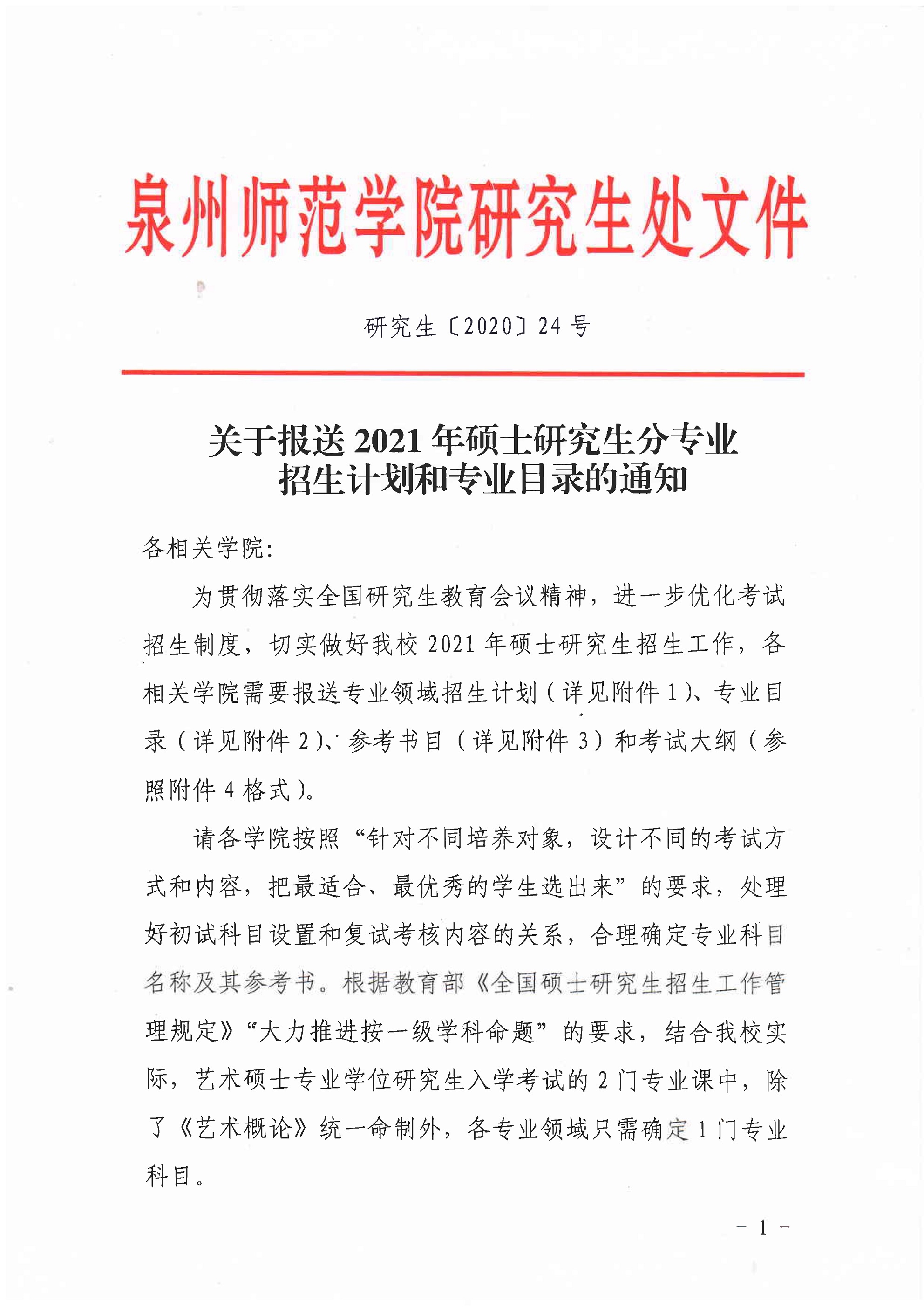 2021考研院校公告:泉州師范大學發布《關于報送2021年碩士研究生分專業招生計劃和專業目錄的通知》”的相關內容,我們一起來看!