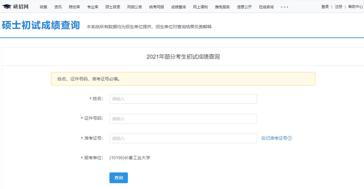 長春工業大學考研初試成績查詢入口:https://yz.chsi.com.cn/apply/cjcx/t/10190.dhtml