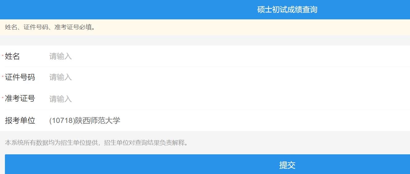 陜西師范大學(xué)考研初試成績查詢?nèi)肟?/span>:https://yz.chsi.com.cn/apply/cjcx/t/10718.dhtml