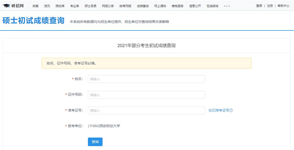 2021考研初試成績(jī):西安財(cái)經(jīng)大學(xué)考研初試成績(jī)查詢?nèi)肟陂_啟!初試成績(jī)已公布!”的內(nèi)容,希望對(duì)你們有所幫助。