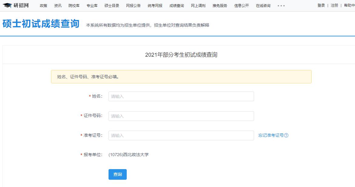 西北政法大學考研初試成績查詢入口:https://yz.chsi.com.cn/apply/cjcx/t/10726.dhtml
