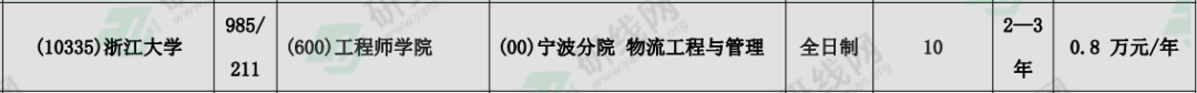 浙江大學物流工程與管理專業學制為2-3年,學費為0.8萬元/全程。
