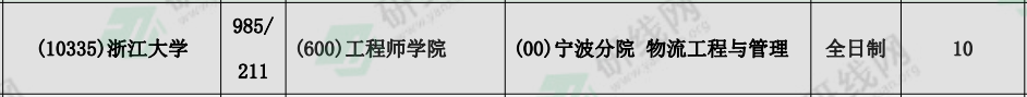 浙江大學2021年工程師學院物流工程與管理專業全日制擬錄取人數為10人。